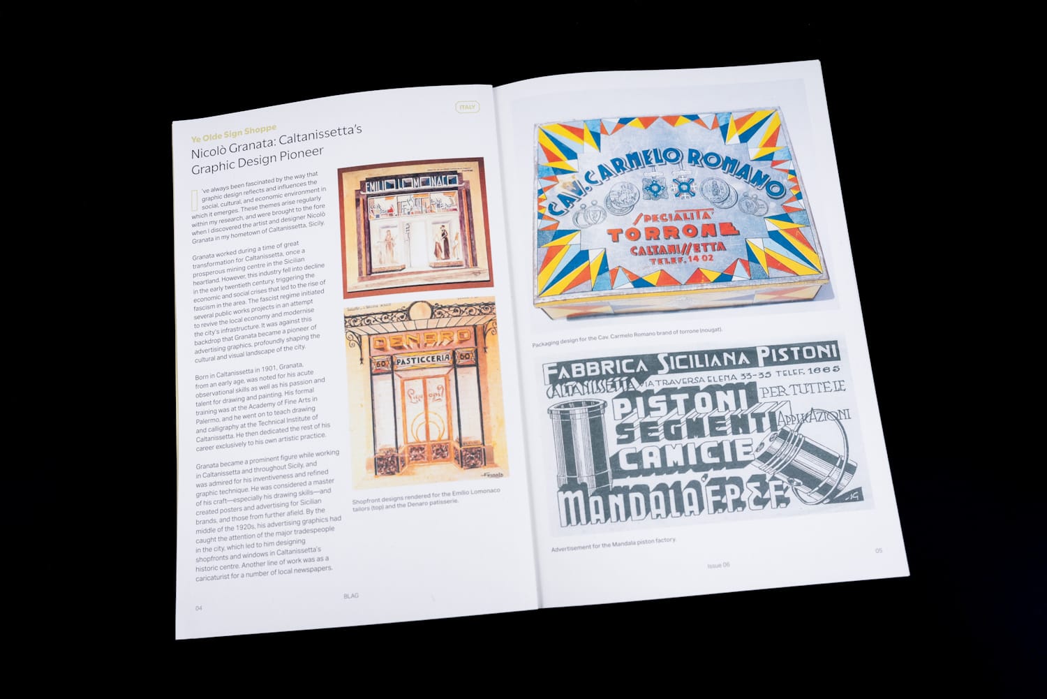 This issue's 'Ye Olde Sign Shoppe' tells the story of Sicily's graphic design pioneer, Nicolò Granata, while Jenna Homen looks back at more than 60 years of Studio Sign Co. in her 'Shop Talk' column.