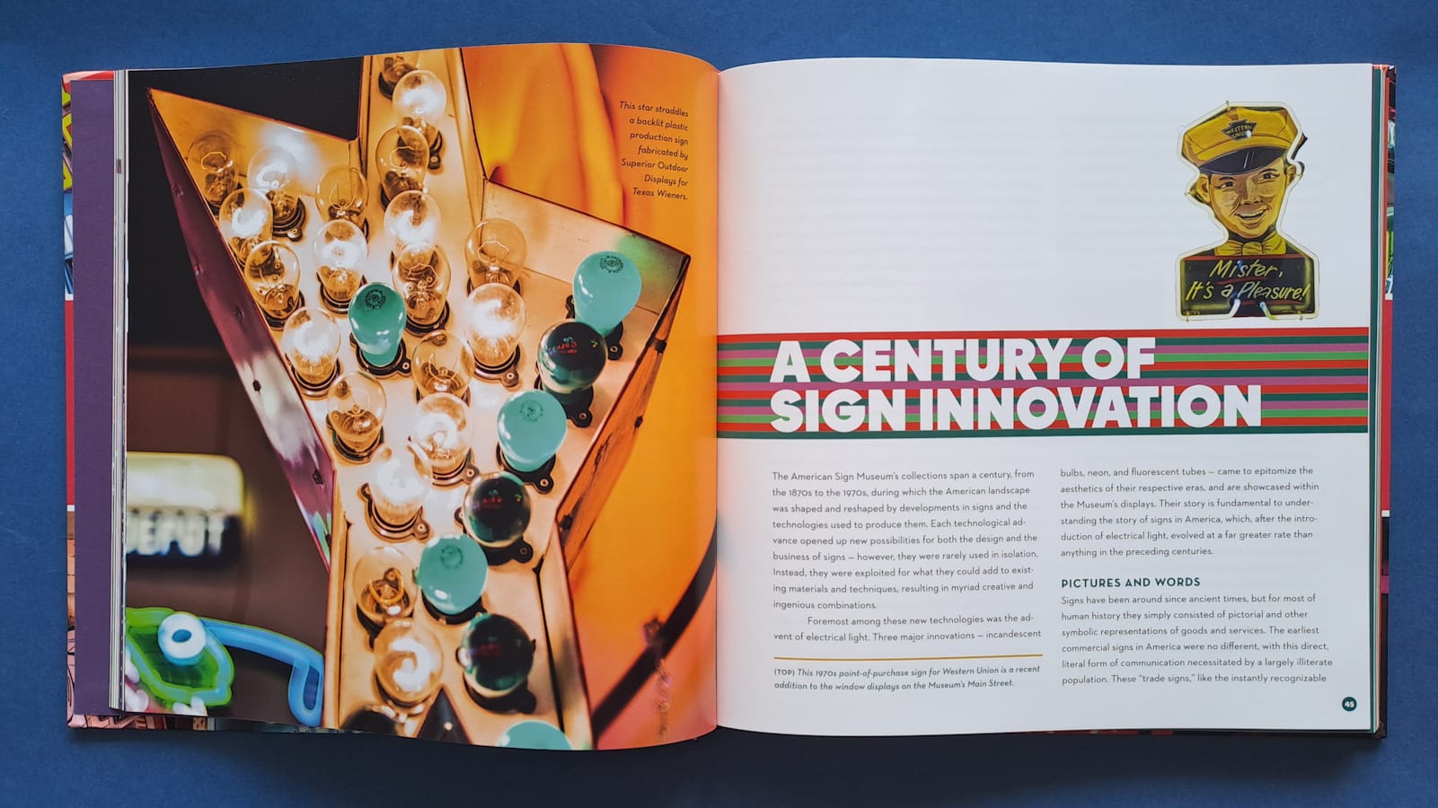 Last Autumn I responded to a request for proposals (RFP) to write the 25th anniversary book for the American Sign Museum. To my surprise and delight they liked my vision for the publication and took me on as the author, alongside Natalie Grilli as the photographer and Kathy Kikkert as the book's designer.