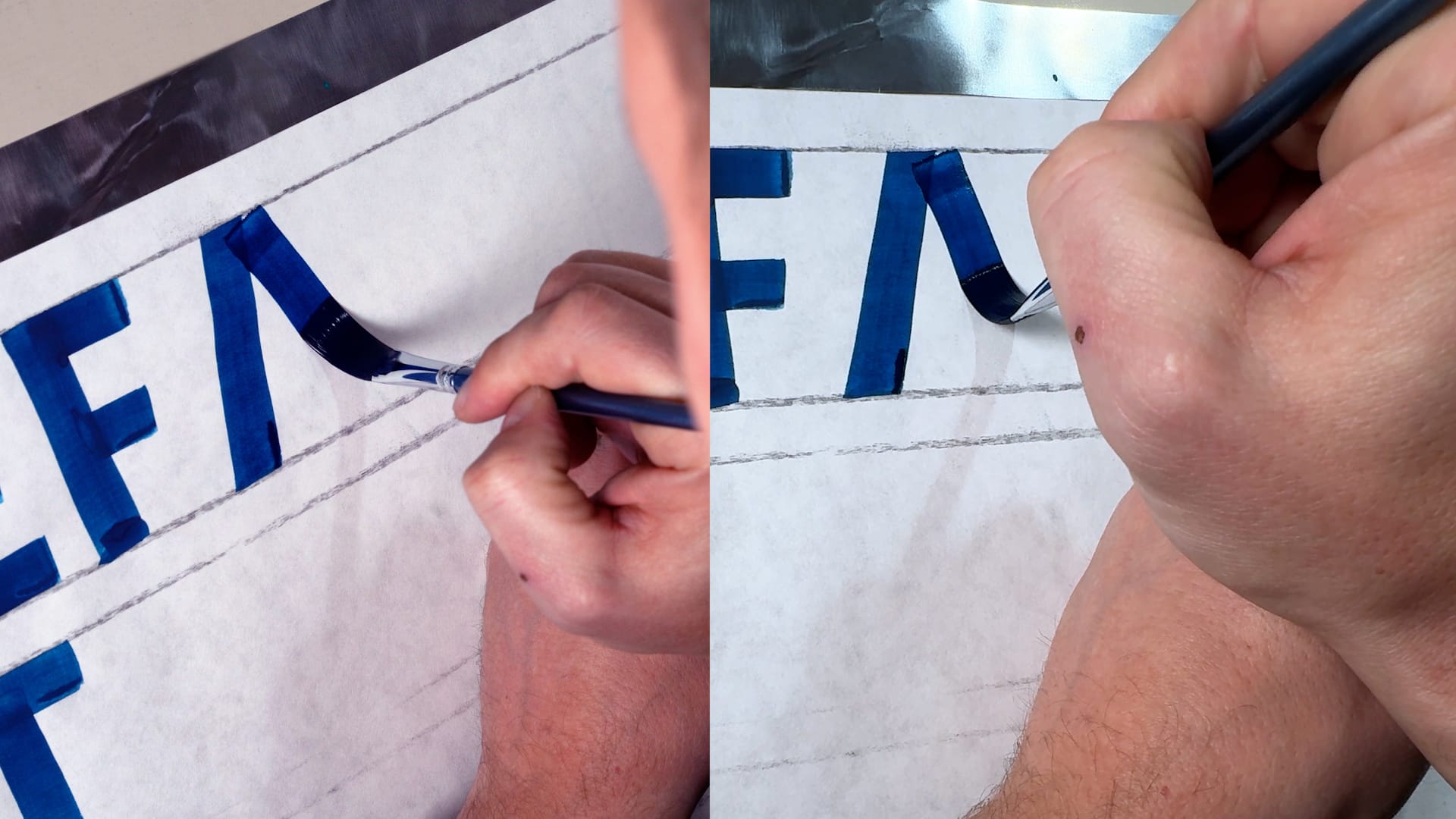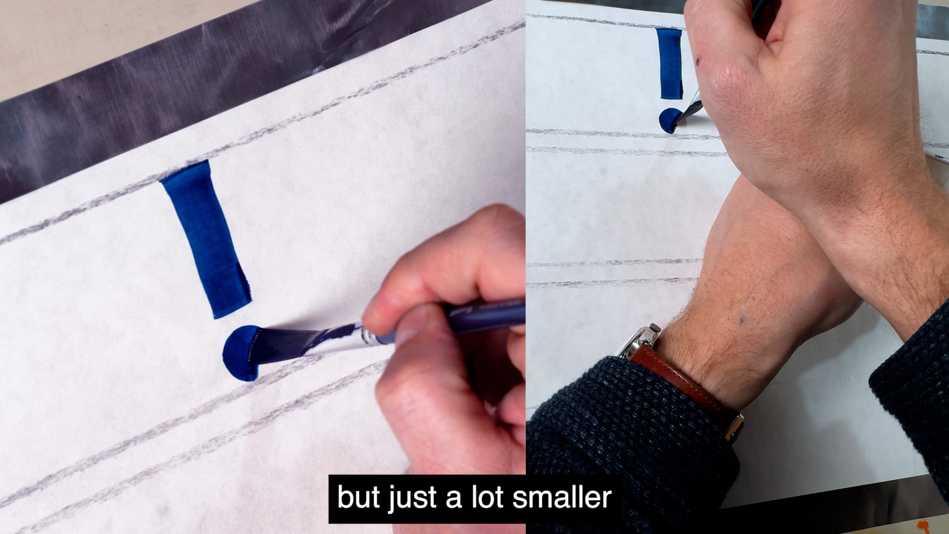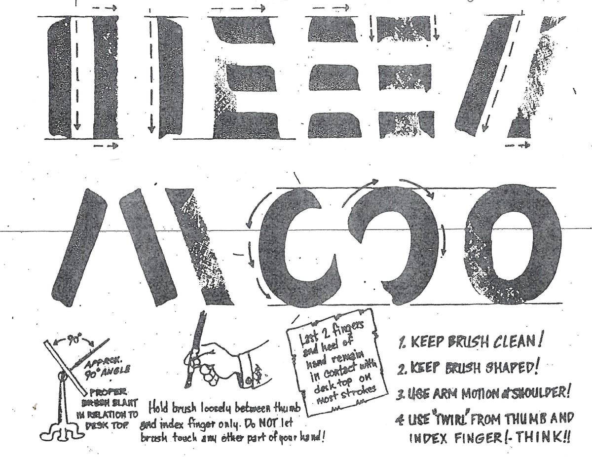 Peter then walks through the spacing between letters so that you can paint words with appropriate visual balance — BLAG members can watch this video at the end of this post. In the section on contrast, he shares a simple way to adjust the widths of your letters while maintaining proportions.