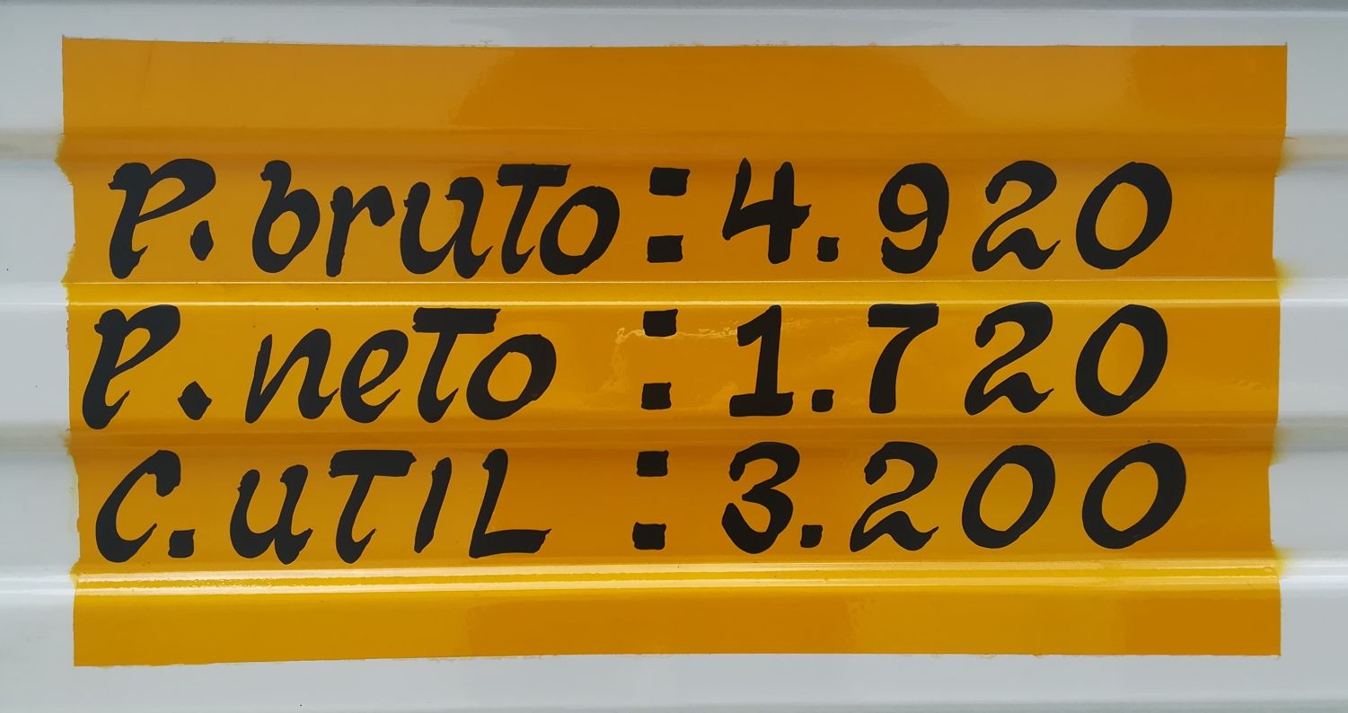 The 2003 national vehicle regulations contained a requirement that all goods vehicles be marked with their weight, maximum load, and the total of these combined. These hand-painted numbers are set within a yellow rectangle and the practice continues to this day, despite the advent of digitally printed alternatives. Photos: Carga Máxima.