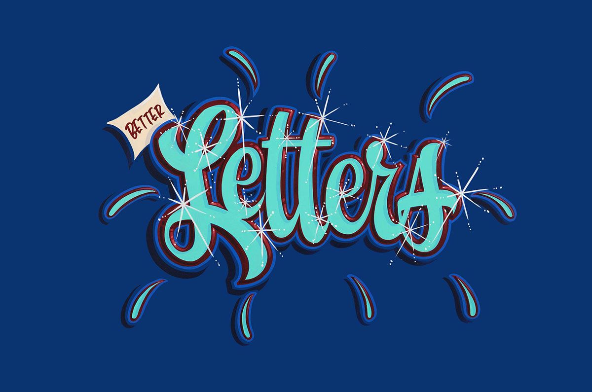 He also painted these two panels in 2017 for the old Better Letters website, with all the pieces displayed that that year's Summer Showcase.