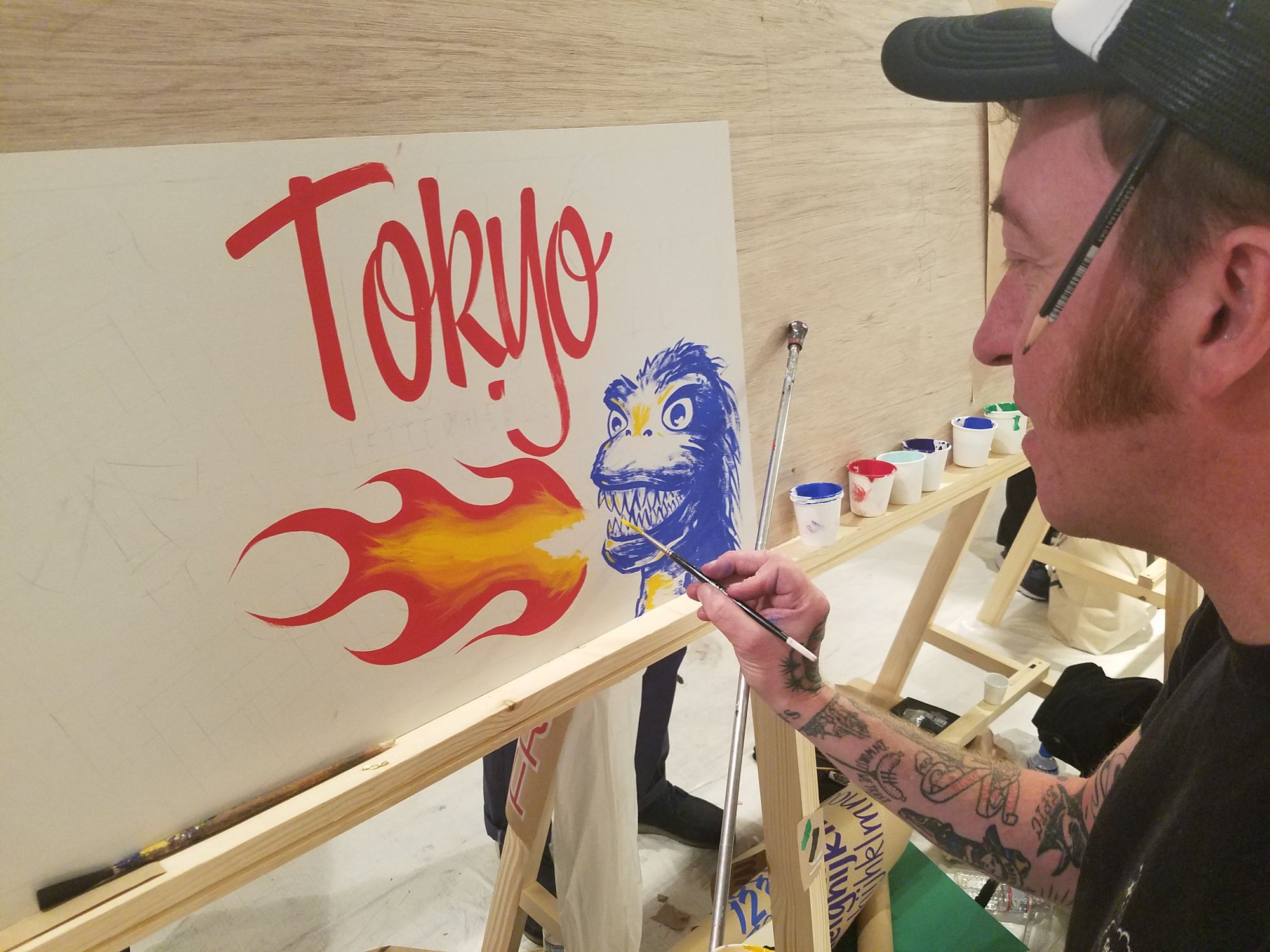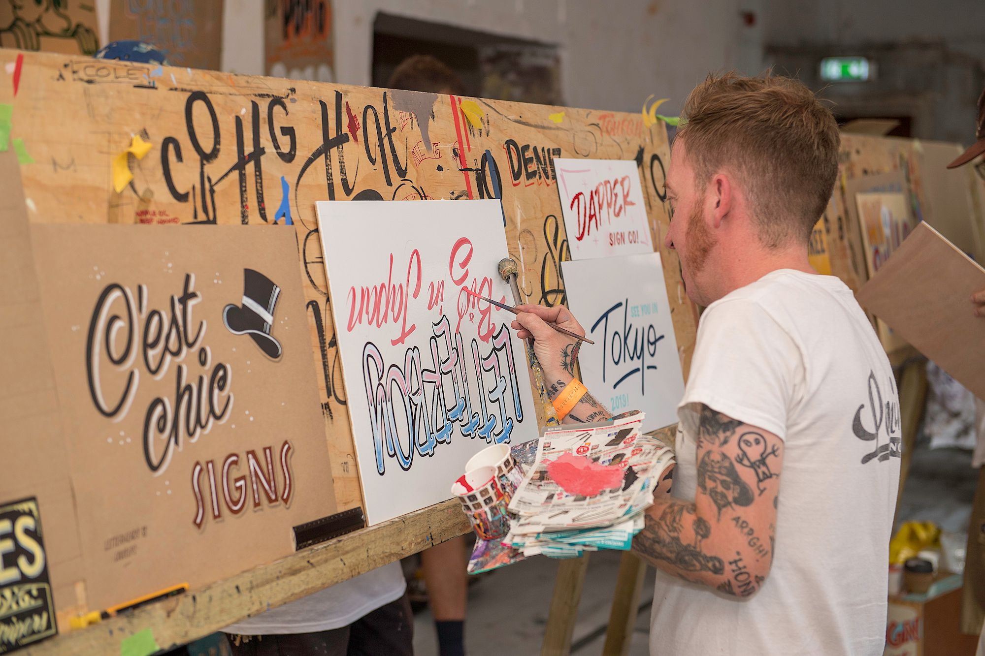On the brush at the Signwriting Festival in West Wycombe (2022) and Tokyo Letterheads (2019).