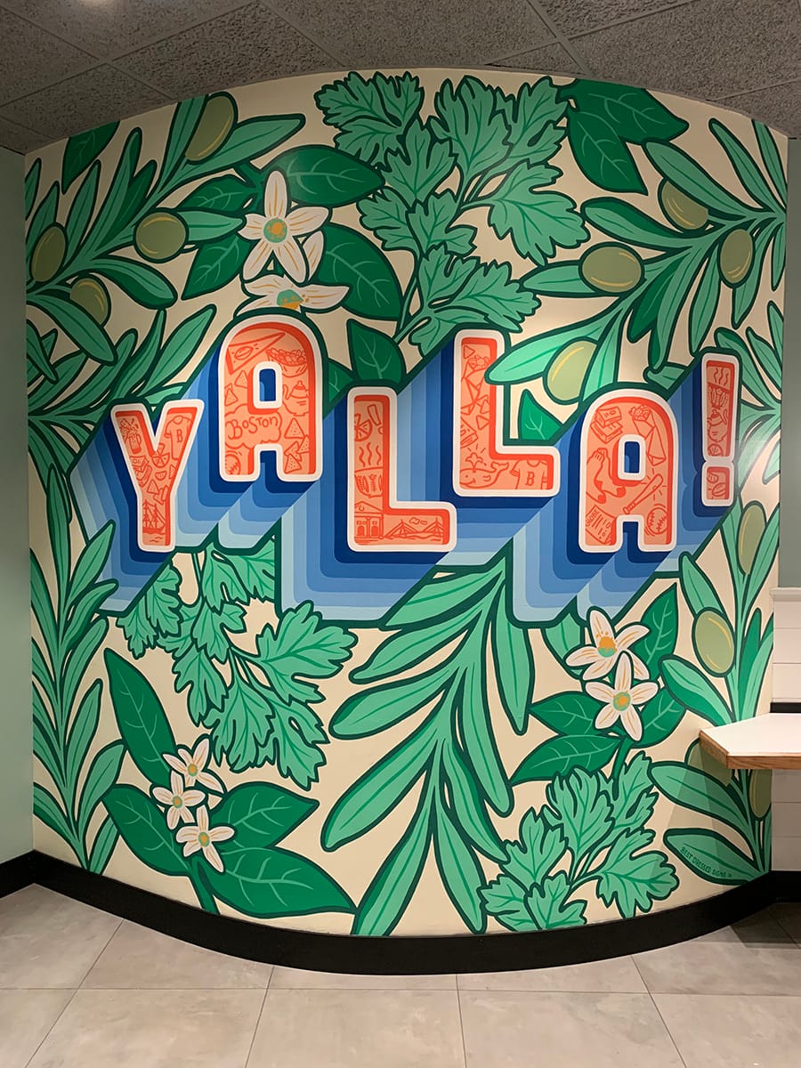 Best Dressed Signs have uploaded some new projects to their site, including this interior mural for Boston’s Lebanese restaurant, NAYA. Yalla is Arabic for ‘let’s go’.