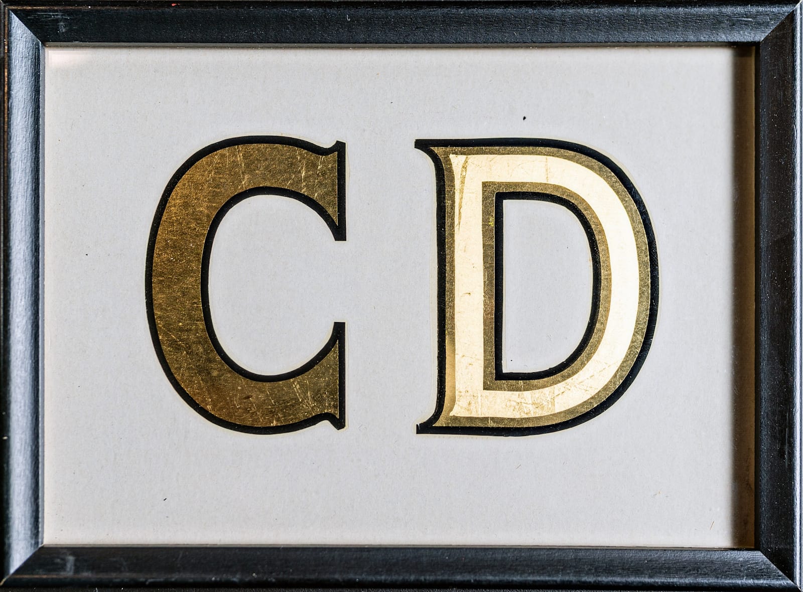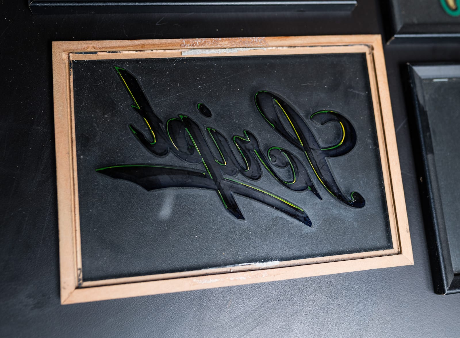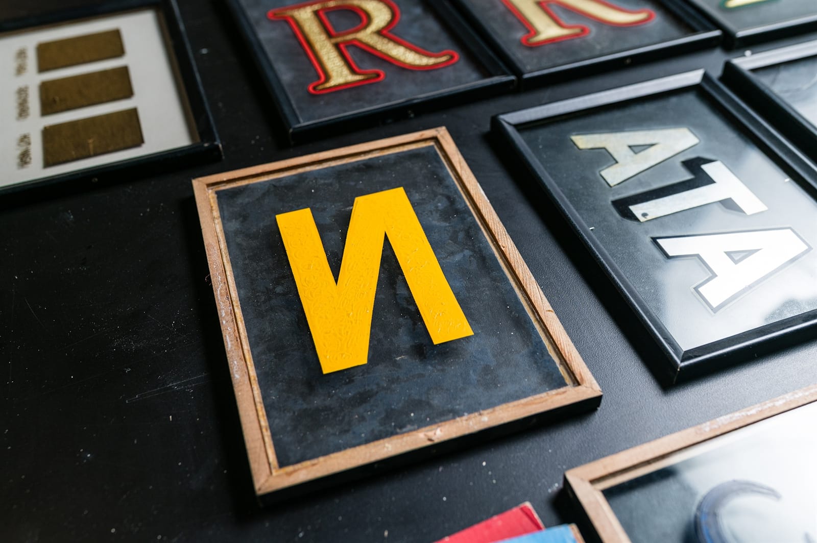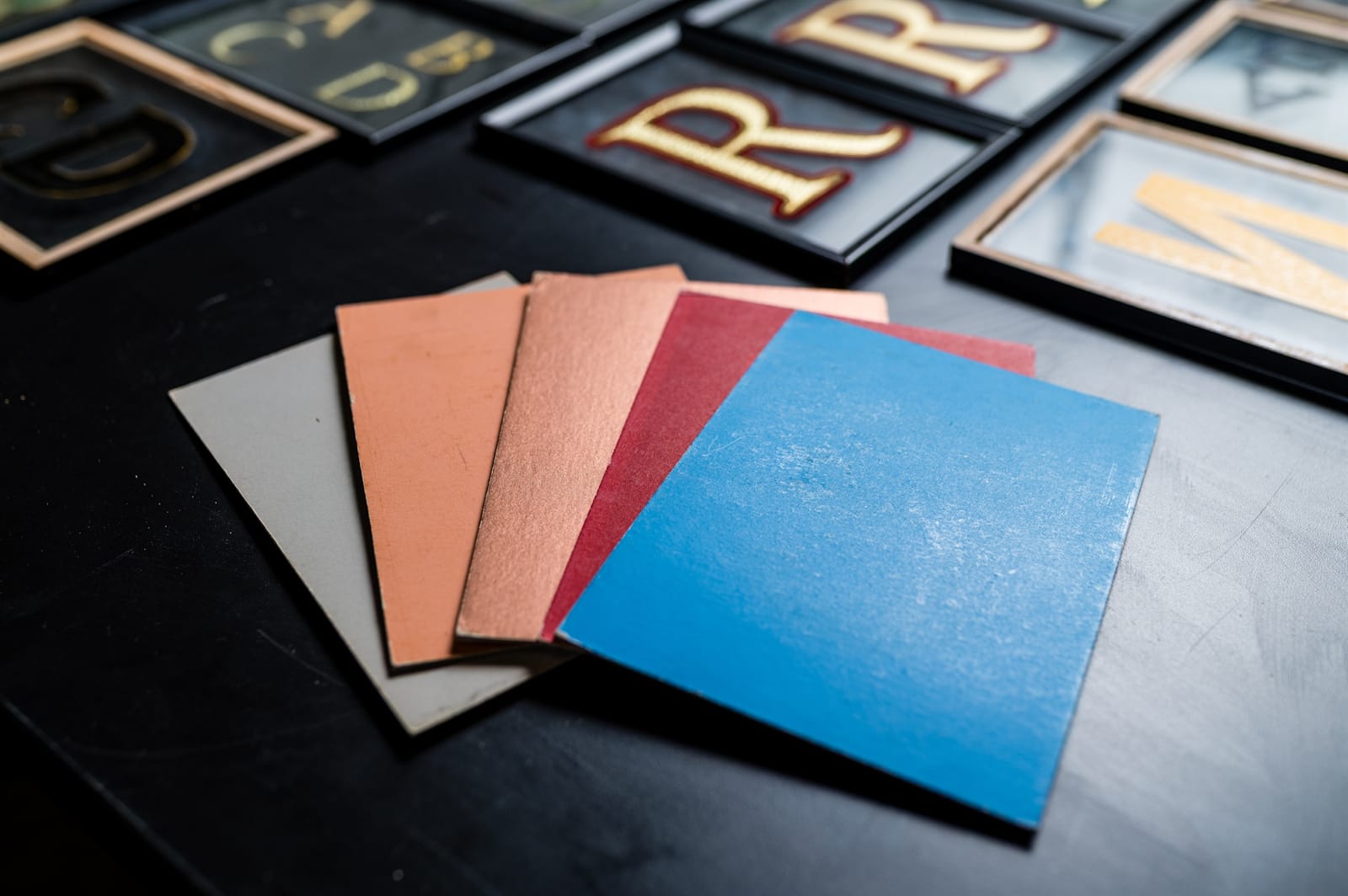 Given their longstanding history, it’s no surprise that gilding samples are found in the displays at the American Sign Museum. They have also played an important role in the history of the institution itself, as outlined in the Museum’s new book. To celebrate the launch of this publication, here is a closer look at two sets of gilding samples taken from the dozens of ‘Sign Stories’ inside, plus one set that regrettably had to be left on the cutting room floor.