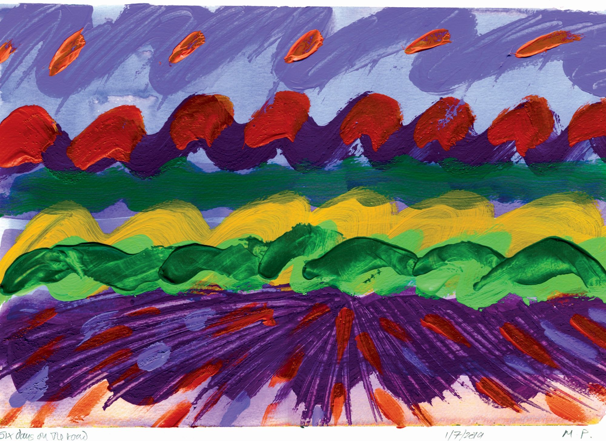 Dad had always painted as a hobby; for him, holidays were mostly an excuse to get some uninterrupted time with his trusty watercolour set. After the diagnosis, the hobby took on a new significance, and the postcard-sized watercolours were no longer enough. Instead, he created larger, more physically expressive acrylic works with landscapes from his life—abstracted by memory—flowing into painting after painting. When I made time to visit my dying father, he would answer the door only to run back to his makeshift studio to lay another coat of paint, muttering something about drying times without barely saying hello. He was obsessed and it was beautiful to see.