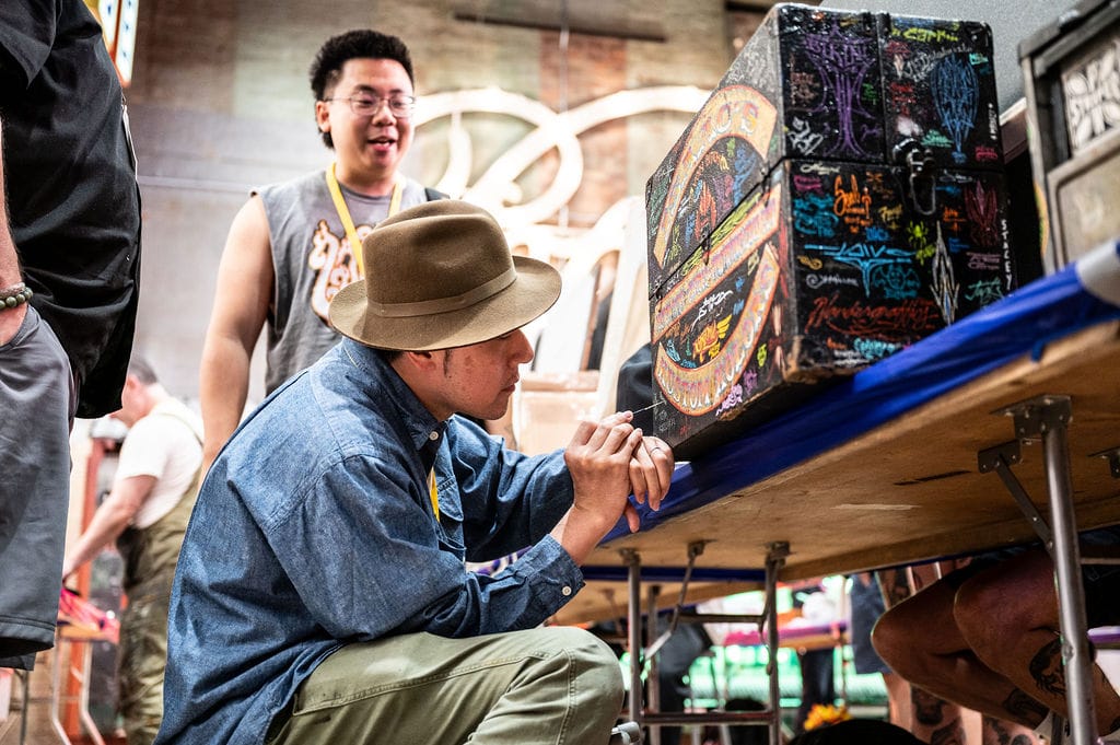 Cincinnati was sweltering in a heatwave during the event, but many braved the outdoors to get involved with the projects located in the parking lot. These included decorating one of the Museum's dumpsters (a tradition that started back at Letterheads 40) and signing the specially prepared mural-style guestbook.
