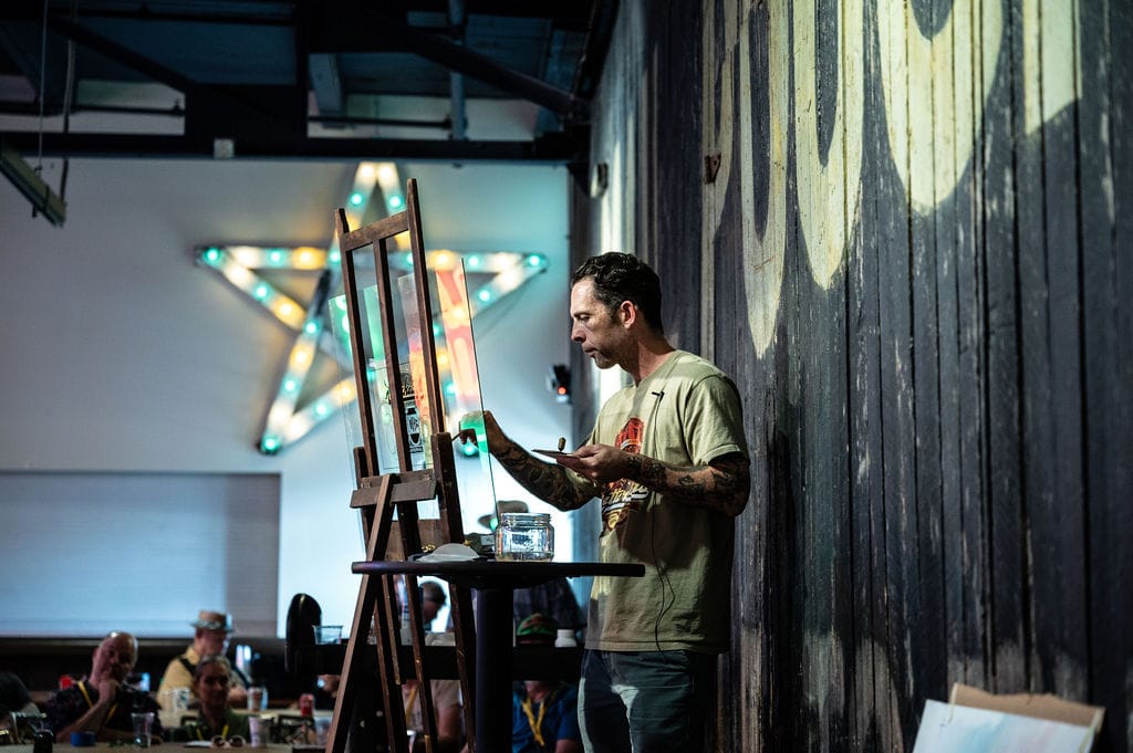 In the midst of it all, some folks managed to set up at the easels in the Museum's Gallery event space and paint panels, while others displayed those they'd produced in ahead of time.
