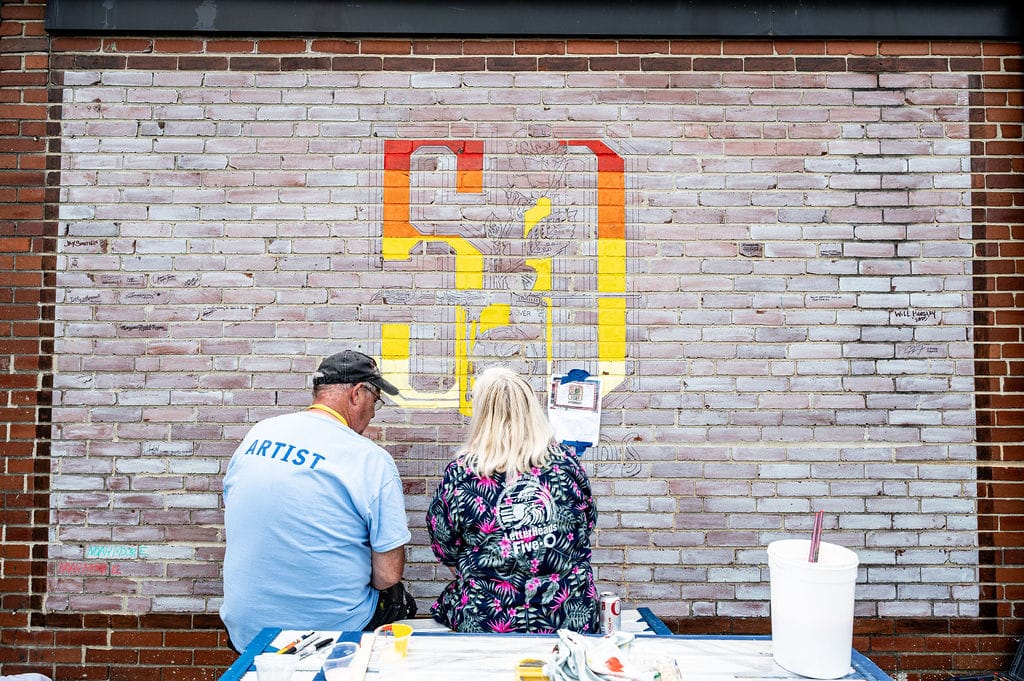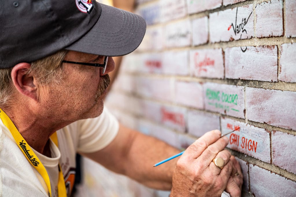 Jim Oskam prepared the wall with the official Letterheads 50 artwork by David Butler and a light finish on the surrounding bricks for everyone to sign.