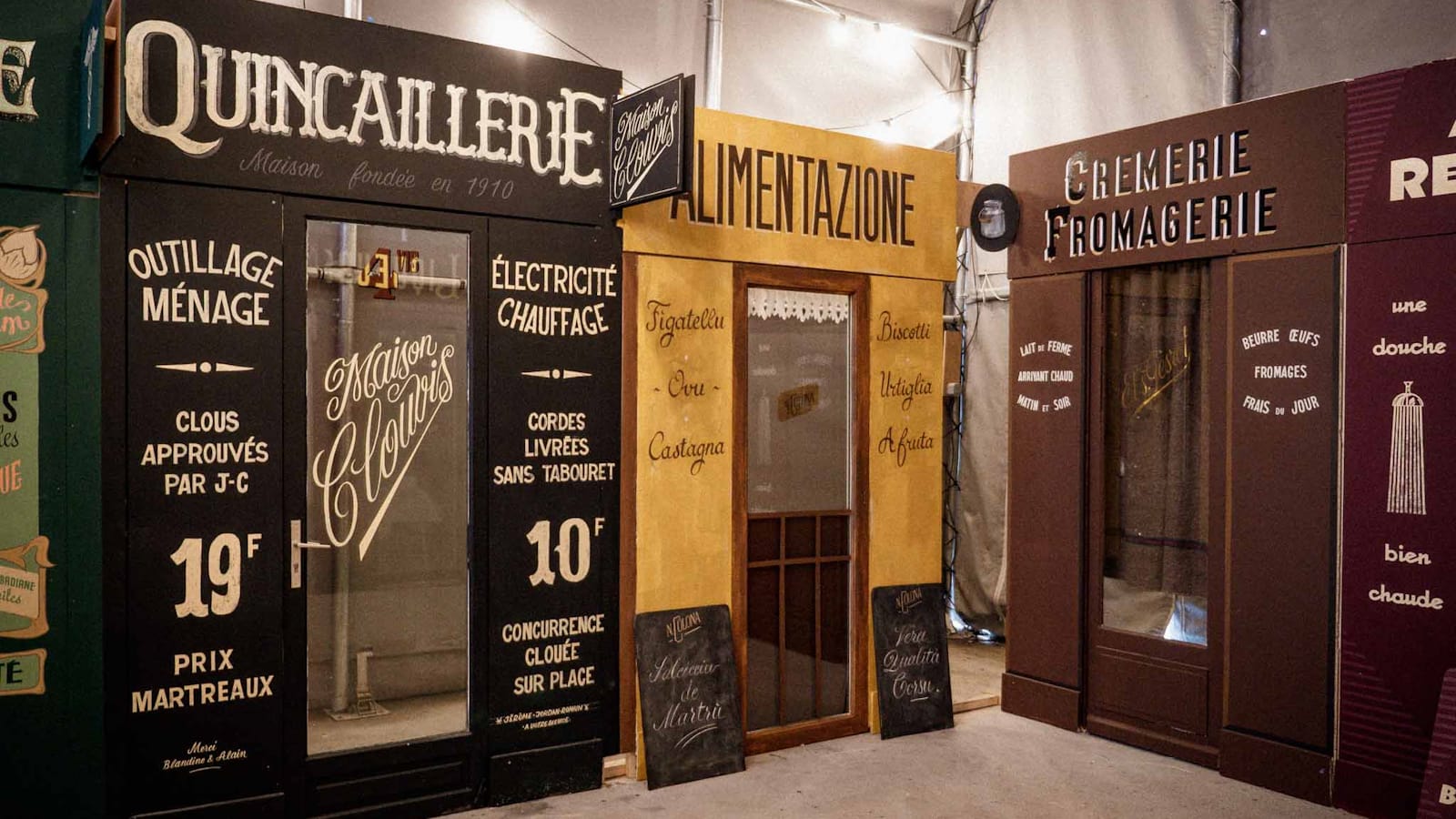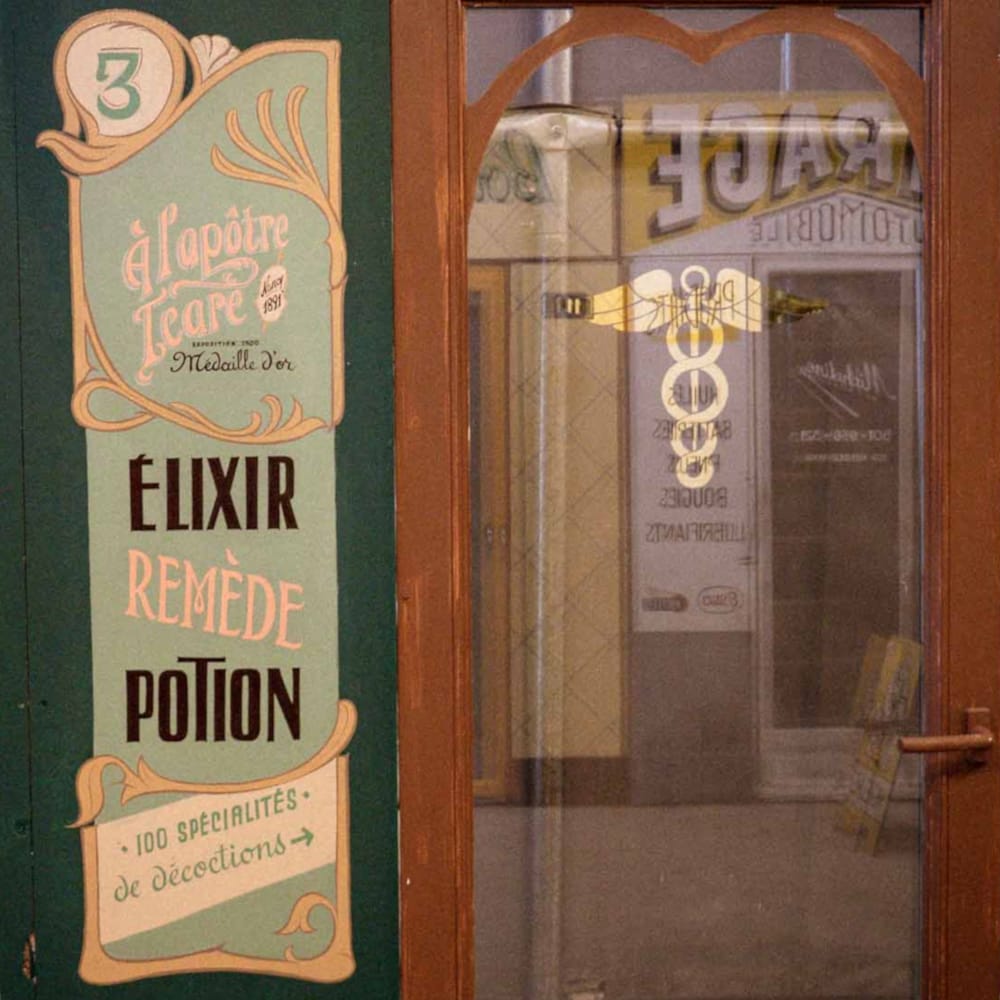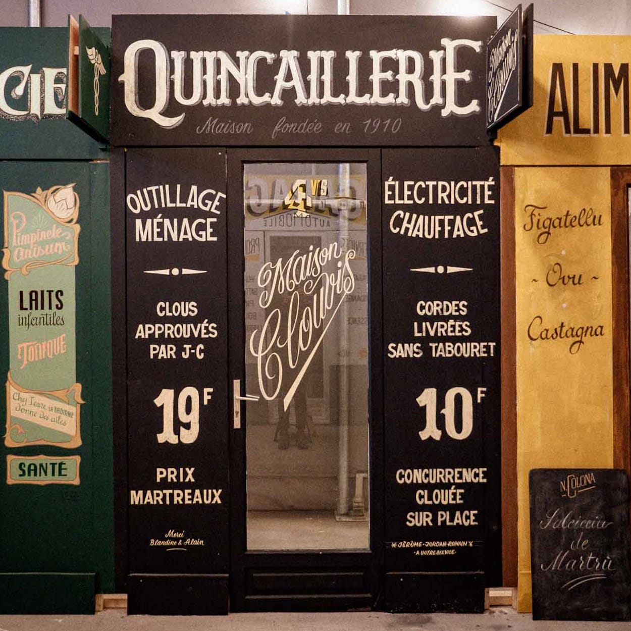 For the second year of France's Martre gathering, it was a case of (paint) shop 'til you drop for the assembled sign painters. Hosts Tristan Gesret (@etsgesret) and Adeline Le Broc had erected a dozen blank shopfronts on 'Rue de la Martre', and the teams of three drew lots to see which they would be furnishing with signs.