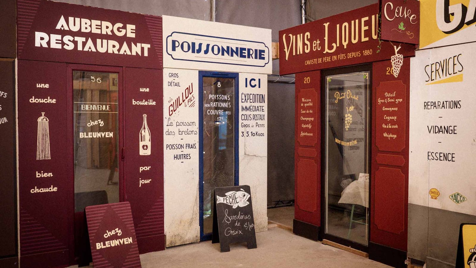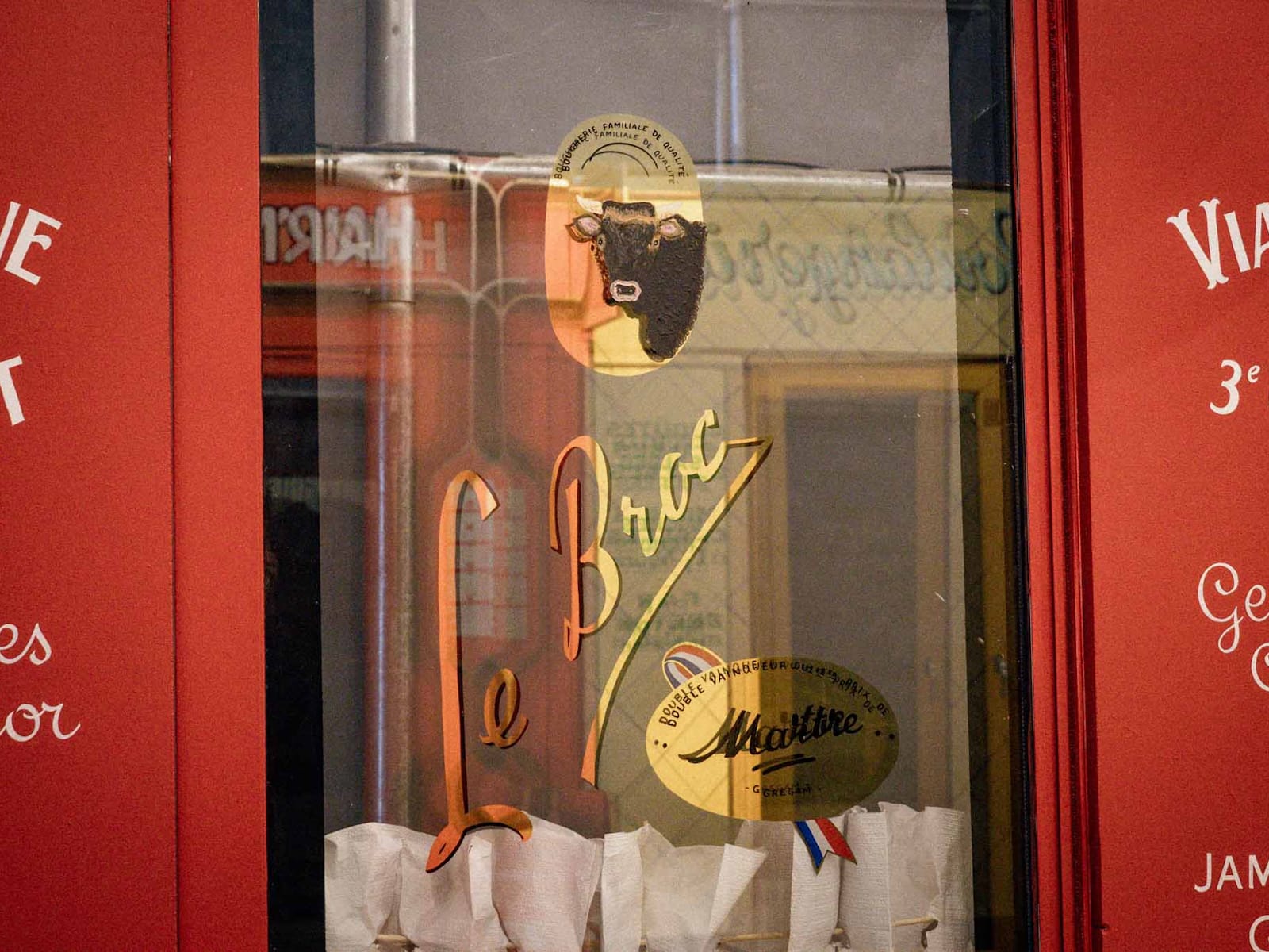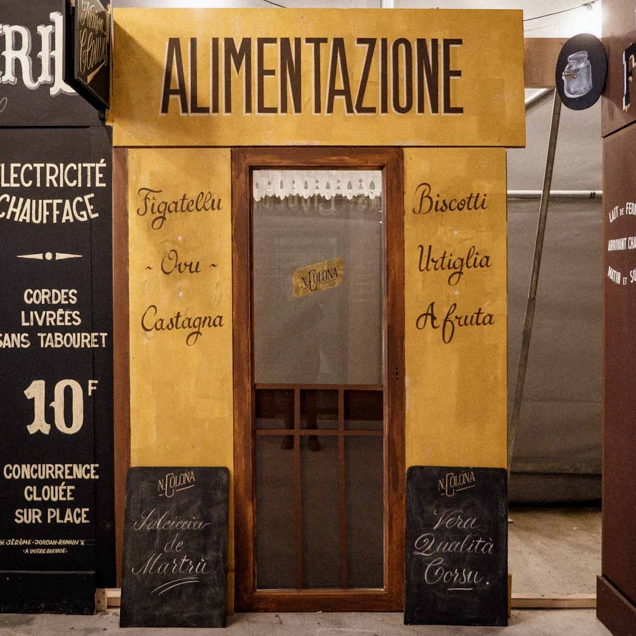 For the second year of France's Martre gathering, it was a case of (paint) shop 'til you drop for the assembled sign painters. Hosts Tristan Gesret (@etsgesret) and Adeline Le Broc had erected a dozen blank shopfronts on 'Rue de la Martre', and the teams of three drew lots to see which they would be furnishing with signs.