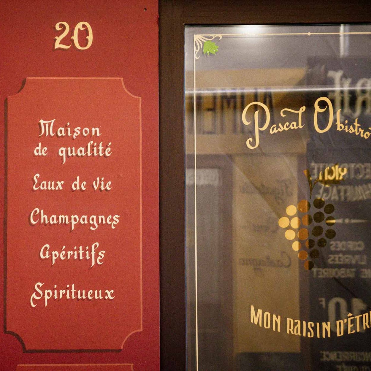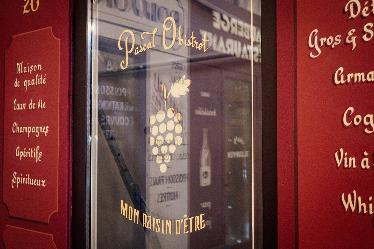 Faux panels, gilded embellishments, and a novel blade sign for the wine and liqueur shop.