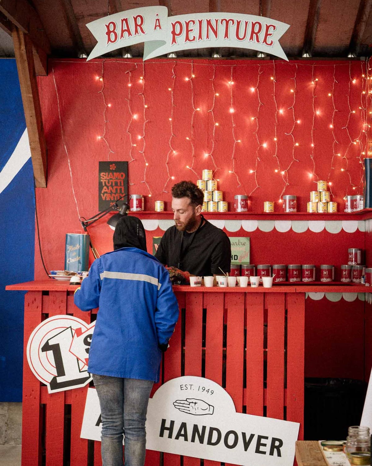 To increase the efficiency of the work in hand, a new innovation for Martre 2024 was the introduction of a 'paint bar'. This allowed the sign painters to get their cups filled and topped up in the required colours by a professional pigmentista.