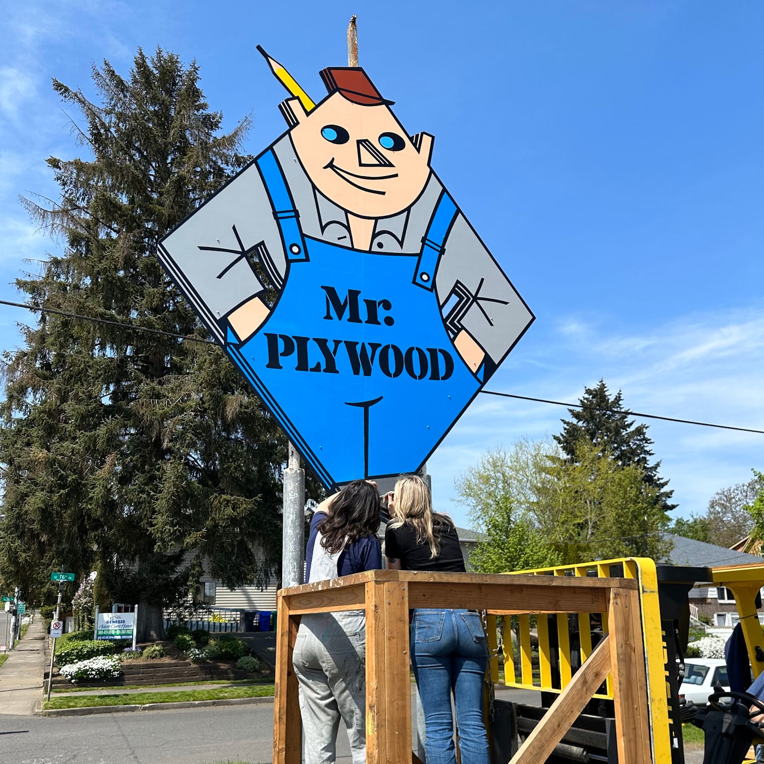 Last year, Kirsten Bauer shared a project via her newsletter that brought a smile to my face. It was a collaboration with studio pal Alina Radetsky, and I invited them to tell the story of their work to recreate Portland's popular Mr. Plywood sign.