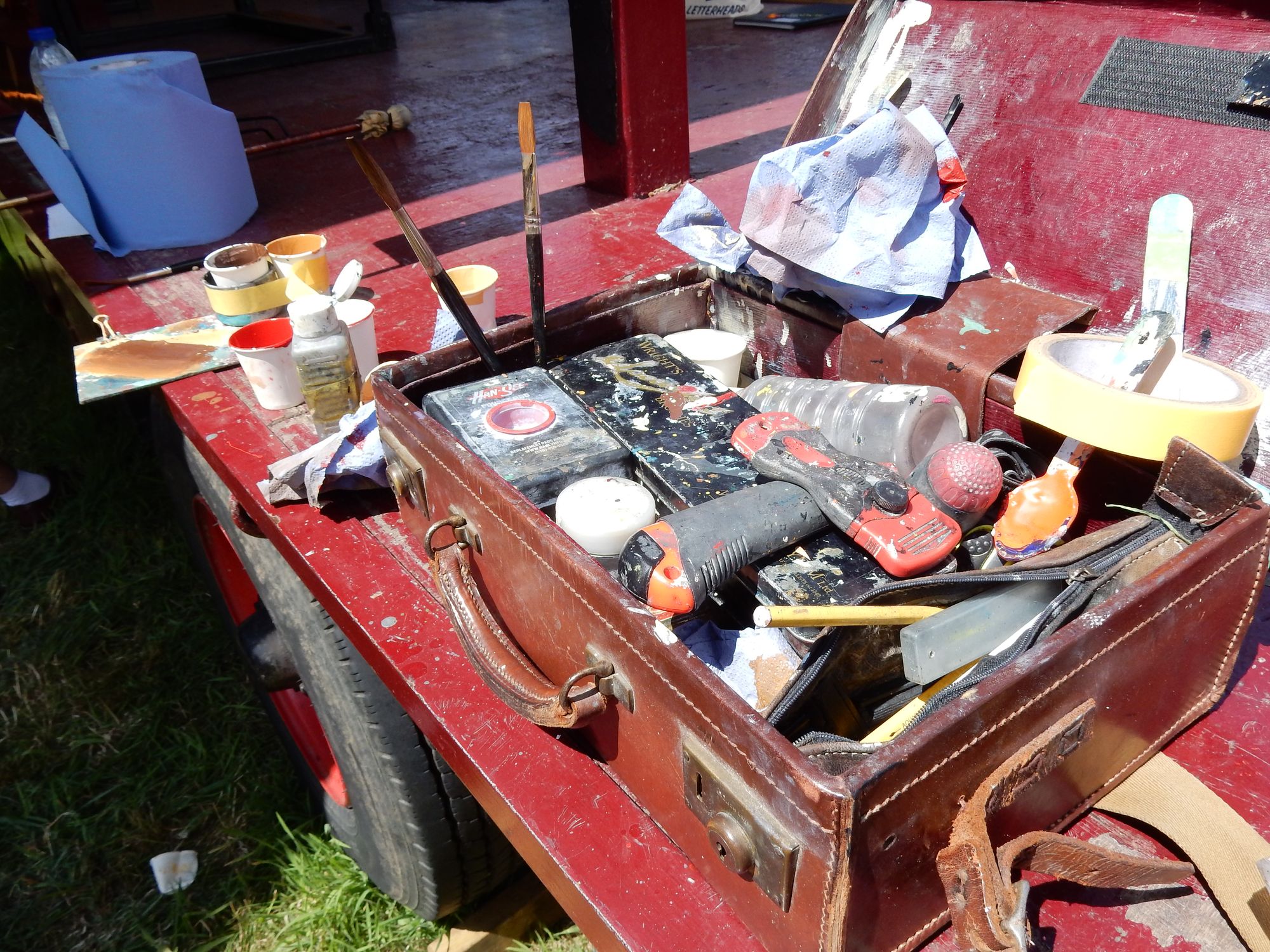 On his way to the event, David Kynaston visited John Leeson's surviving family to collect a variety of his tools, materials and other sign painting paraphernalia. (John Leeson was a sign painter and committed Letterhead who died in October last year while the meet in Norwich was taking place.) Lots of this was passed onto younger painters who will now continue John's legacy armed with his tools.