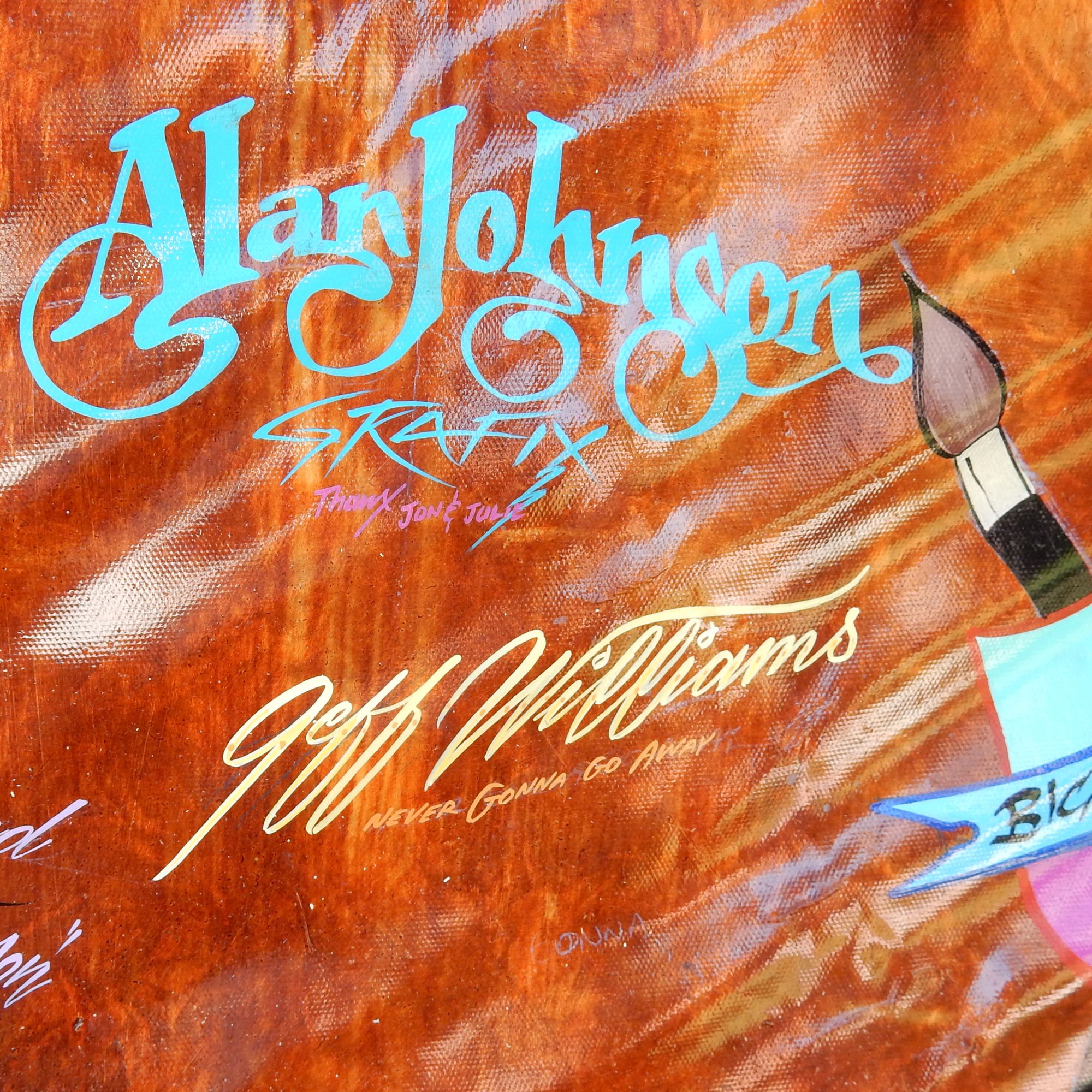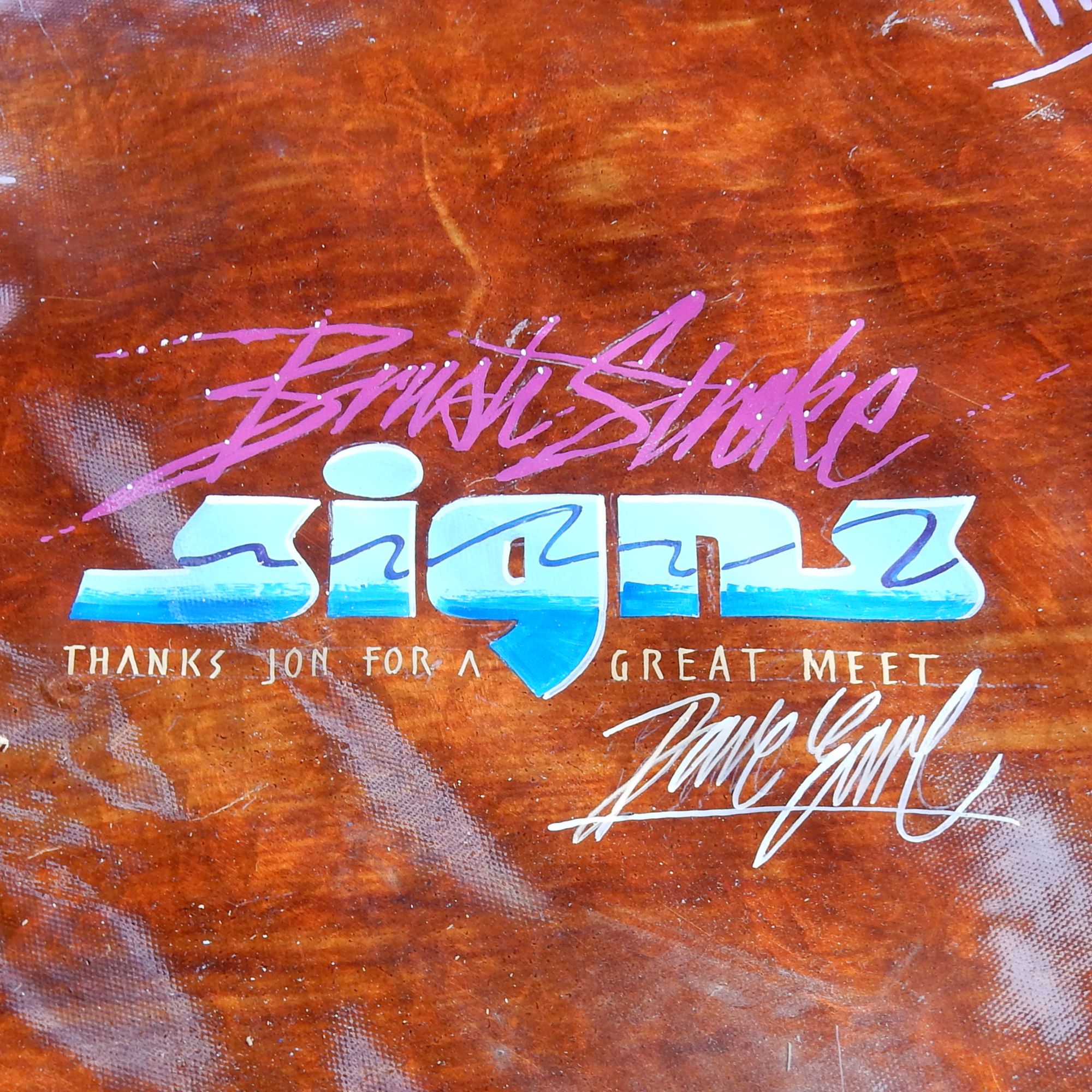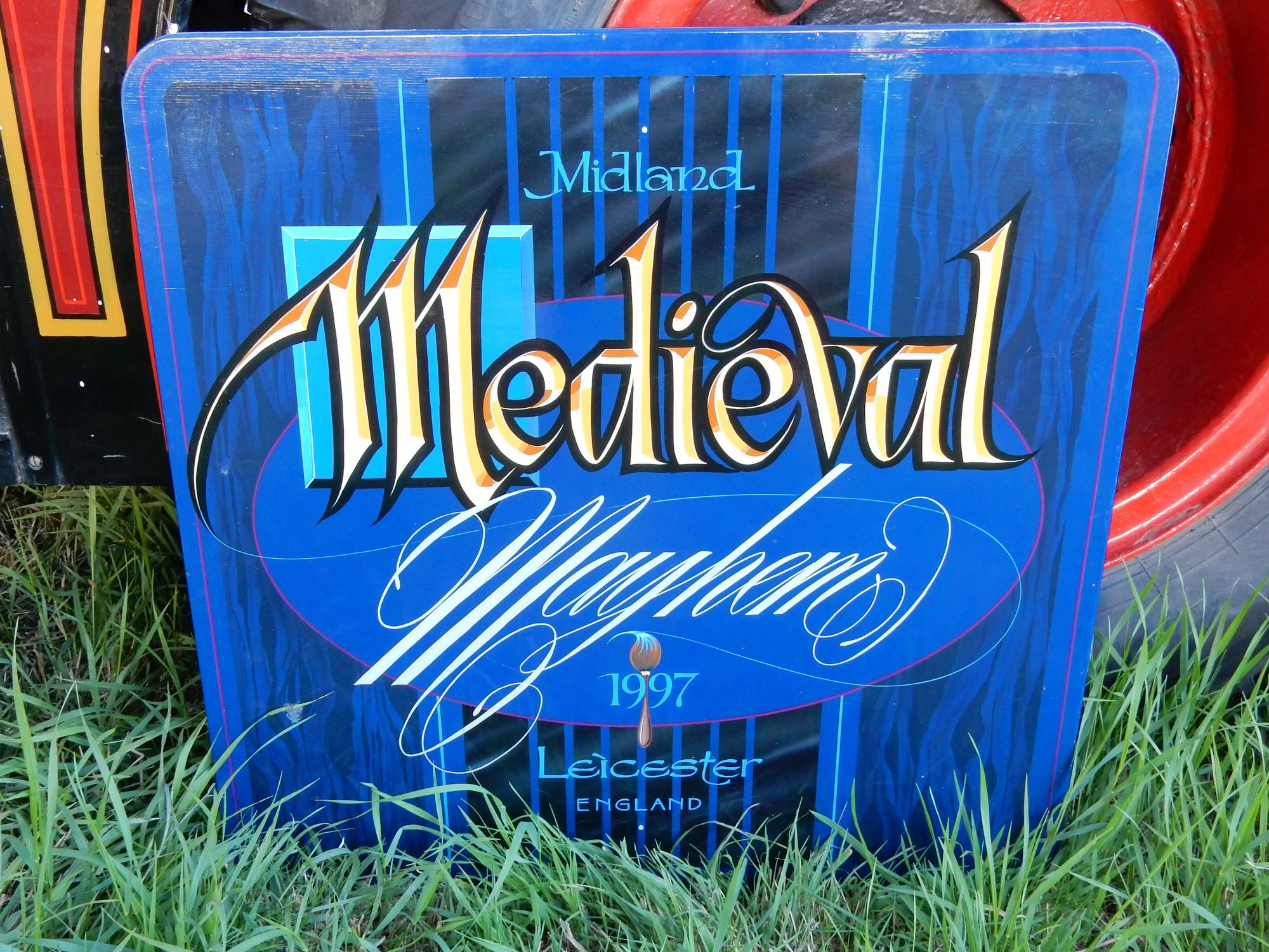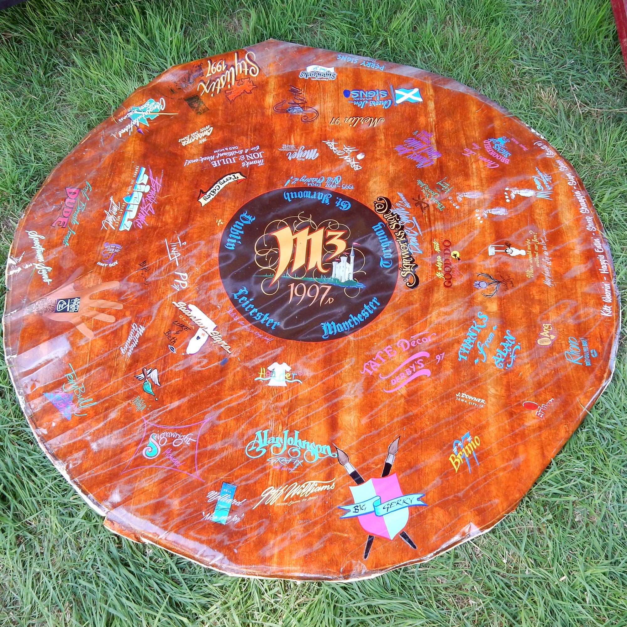 Also among the items filling the back of David's van were a number of pieces from the Midland Medieval Mayhem meet that John hosted in Leicester in 1997. One of these was a vinyl circle, tablemat size, that had been grained and signed by those that attended the event. There were also a host of panels that John kept from the meet.