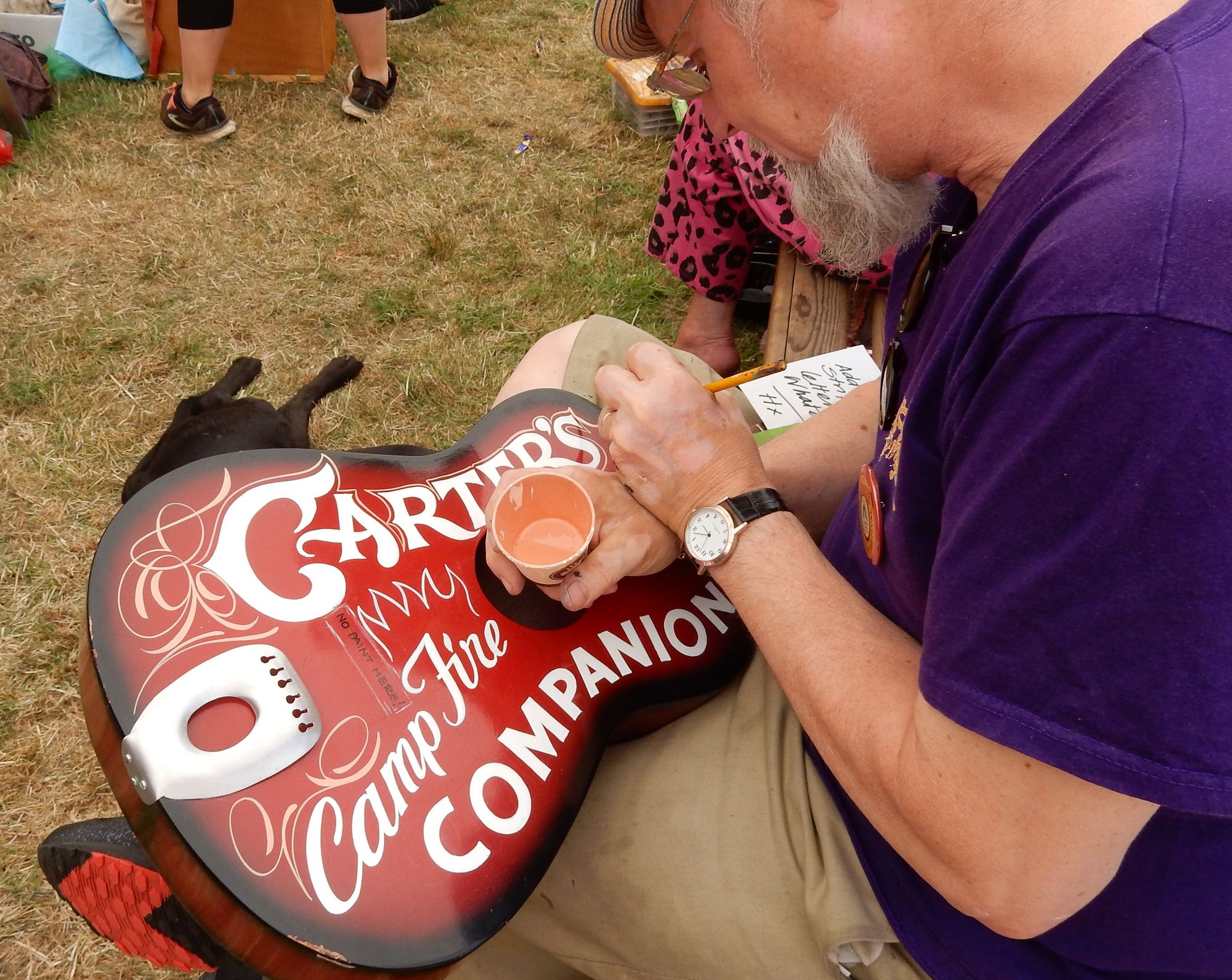 The heartbeat of any meet is the panel jam, which consists of grabbing a spot on an easel and working on a project, usually connected to the event in some way. Lots had brought along finished, or almost finished, panels, so that they could make the deadline of the auction at the end of the first day. This was helped by the sun and heat which made for good drying speeds.