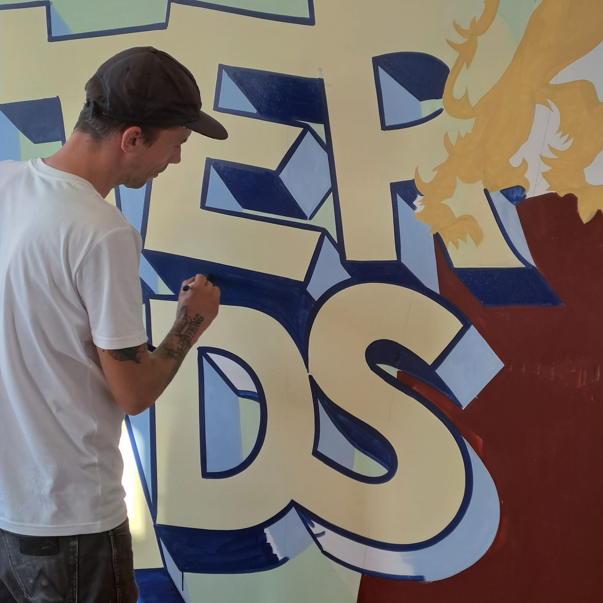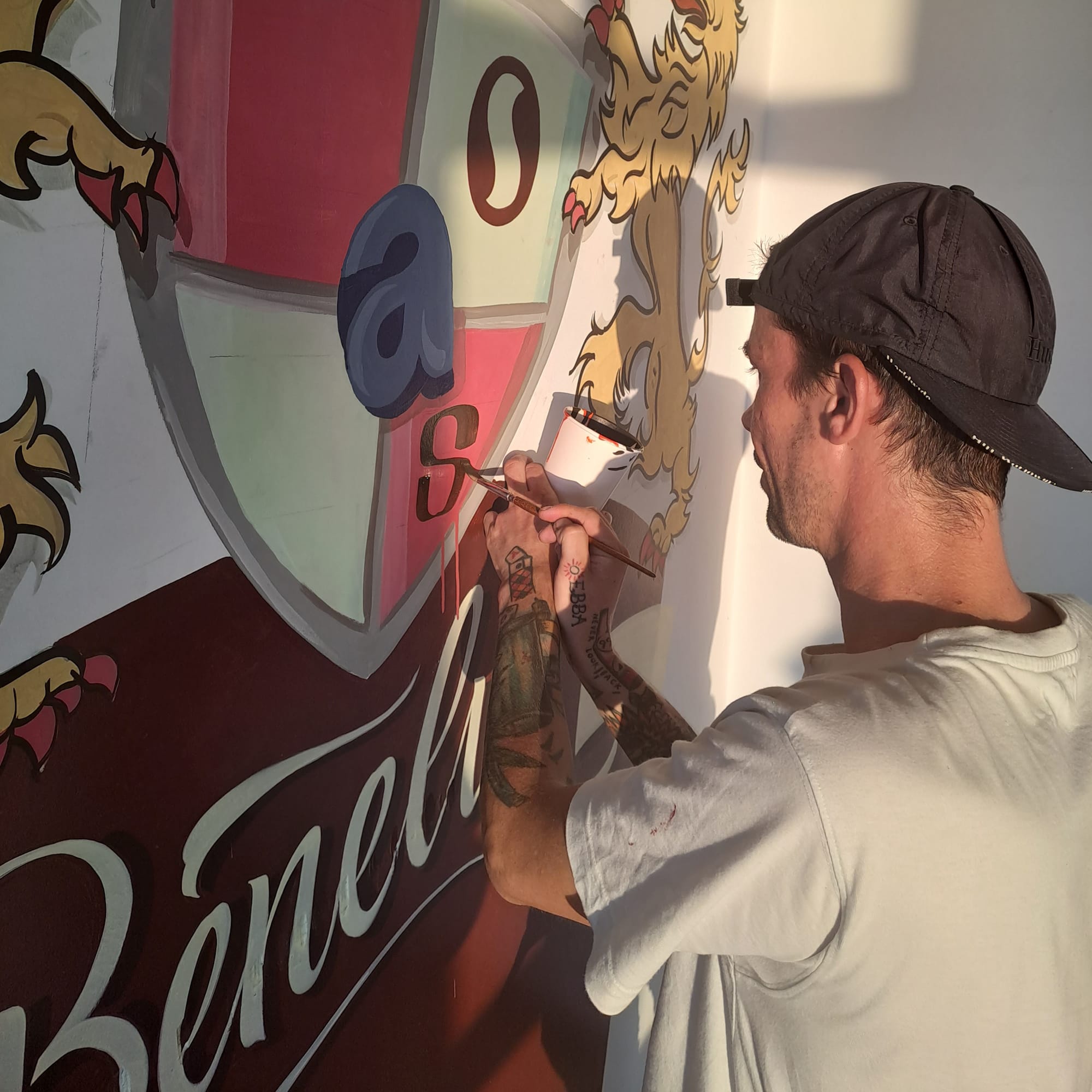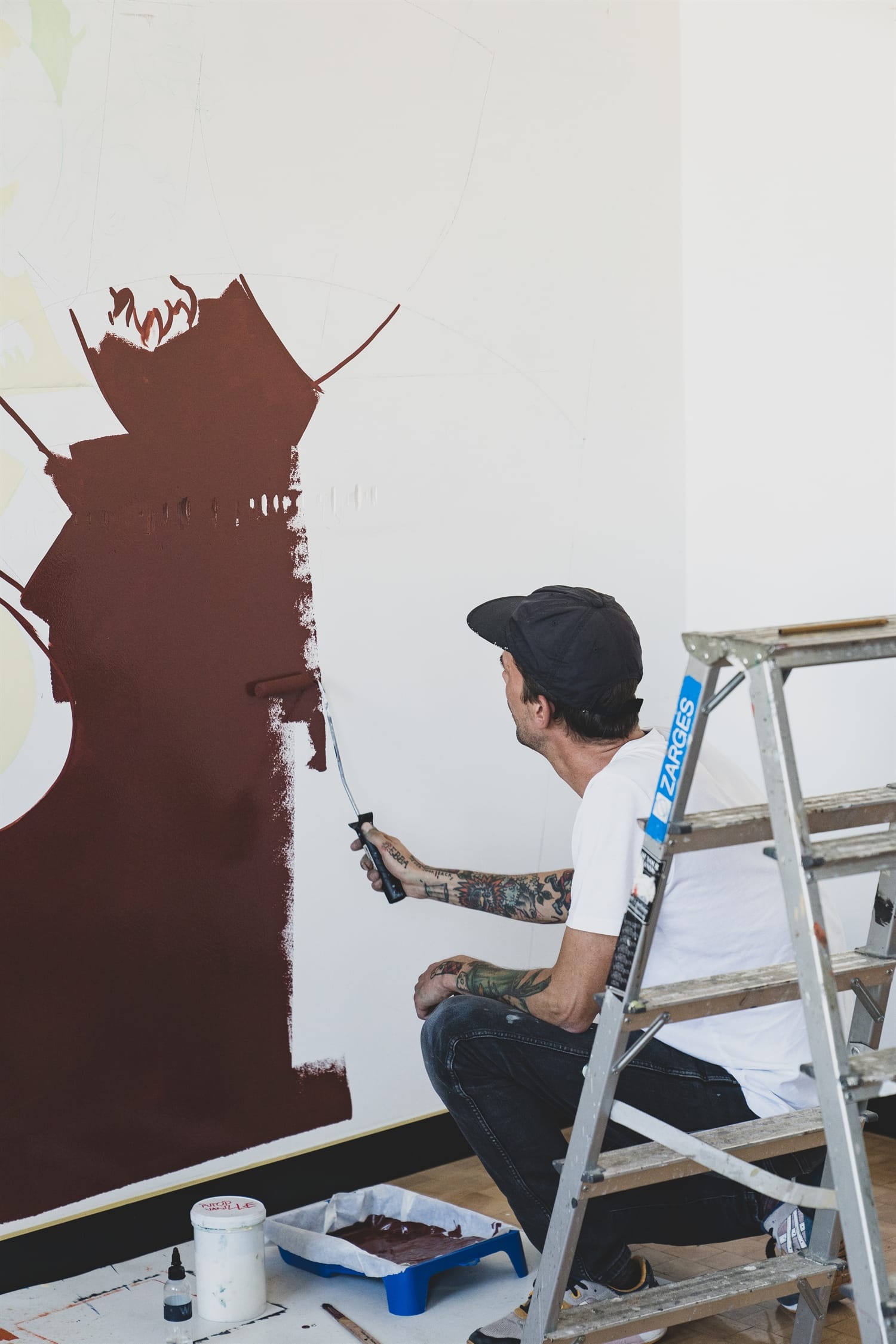 Sebastian Karbowiak gets going on the mural. Photos: Ben Boisacq, ACHROMAT (@achromat.studio)'s '