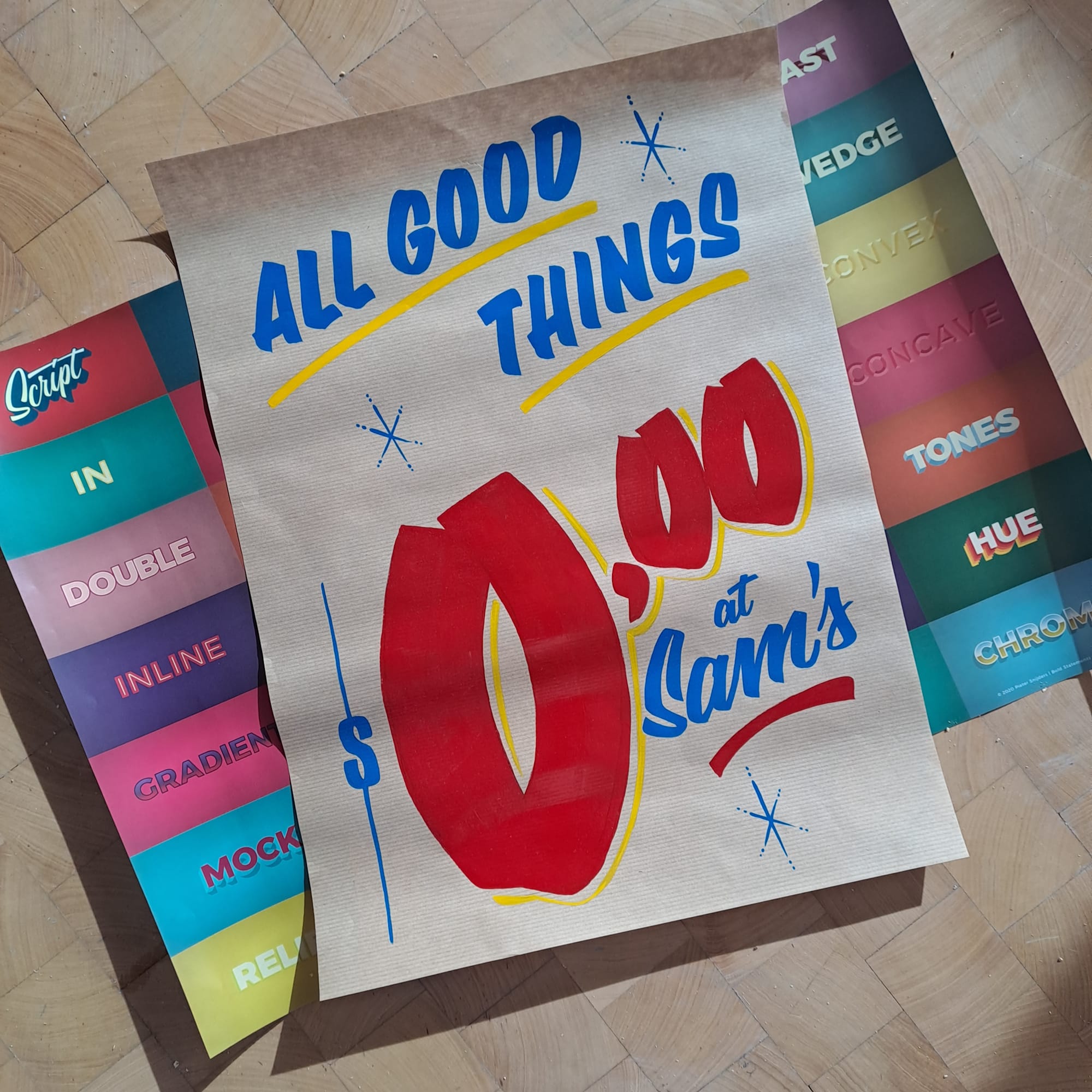 From left: me and Jasper (@paintedbyjasper), the first time that two of the Sign Painting book team have been together since it was published; Peter Snijder's (@boldstatements.nl) birthday presents for yours truly; and a hand-cut letter 's' from the Crickx Research Group.