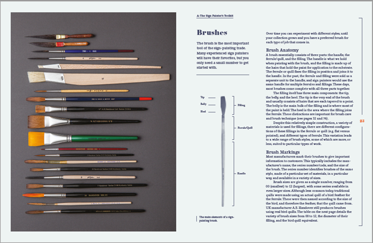 Sign Painting by Mike Meyer & Friends is the most comprehensive contemporary guide to the tools, materials and techniques used by sign painters. It includes a jargon-busting glossary, and details of specialist suppliers around the world. There's also over 40 full-colour alphabets to inspire you.