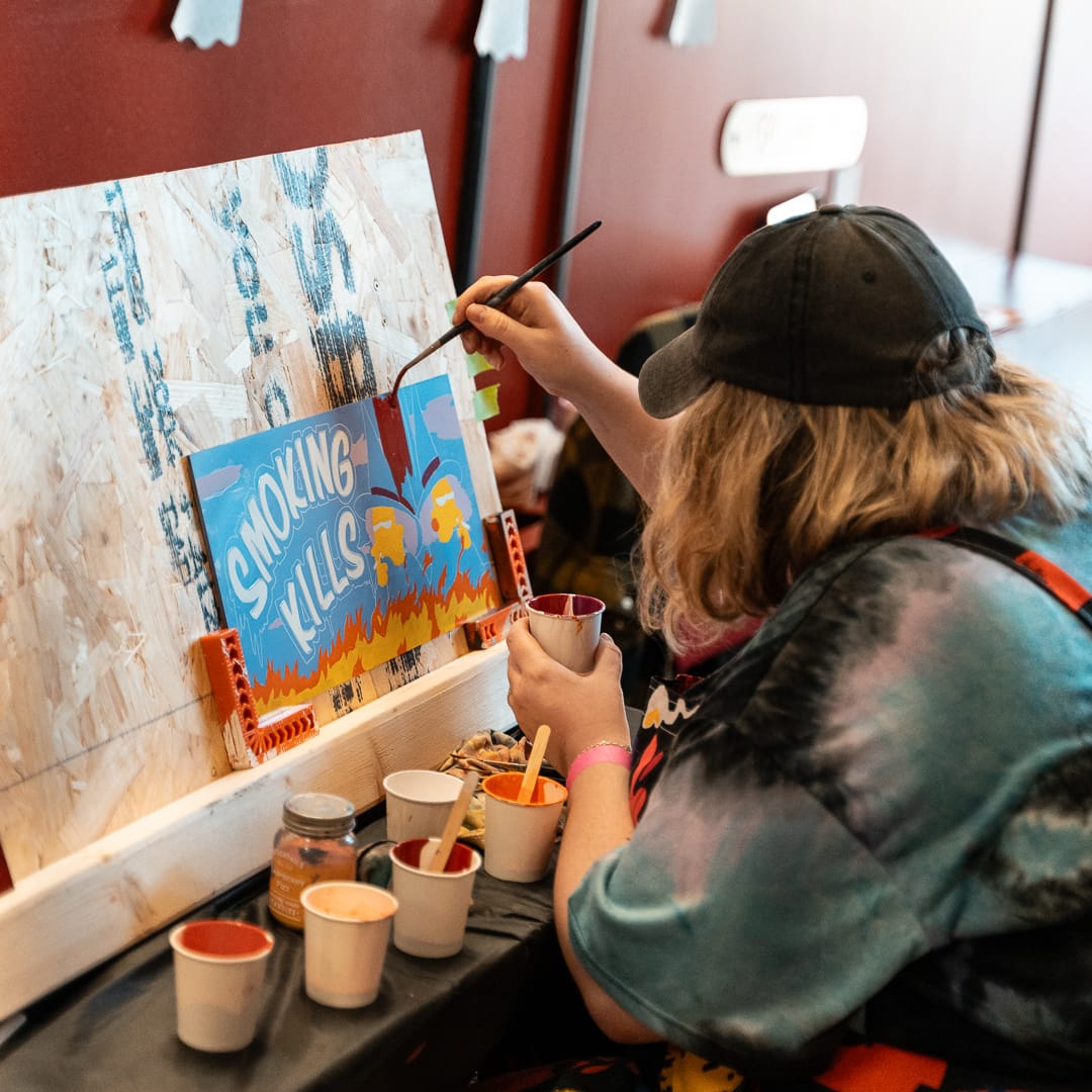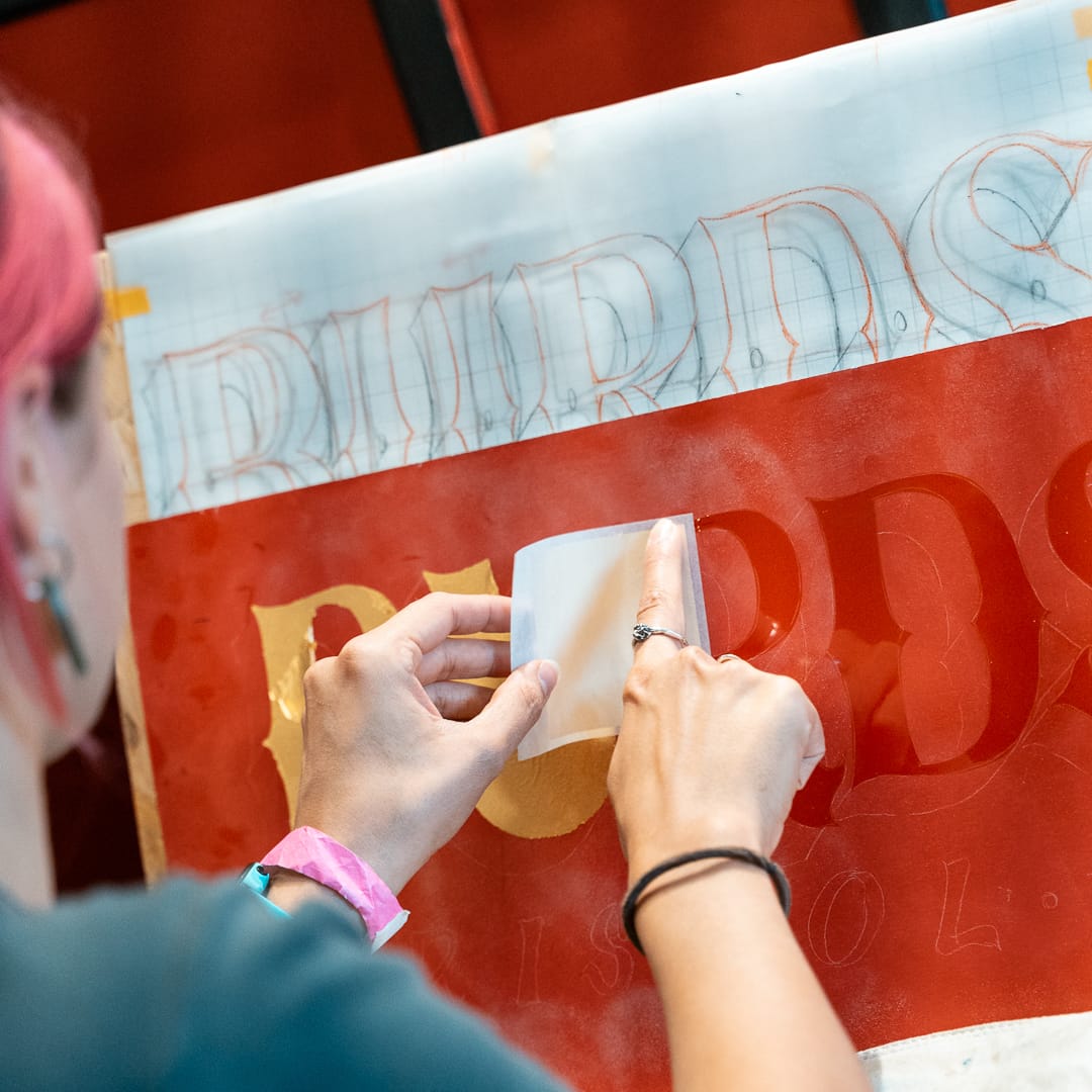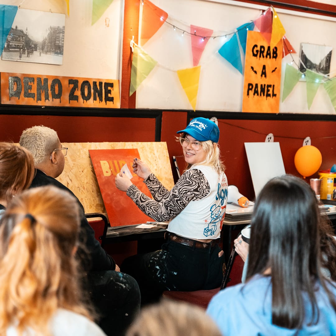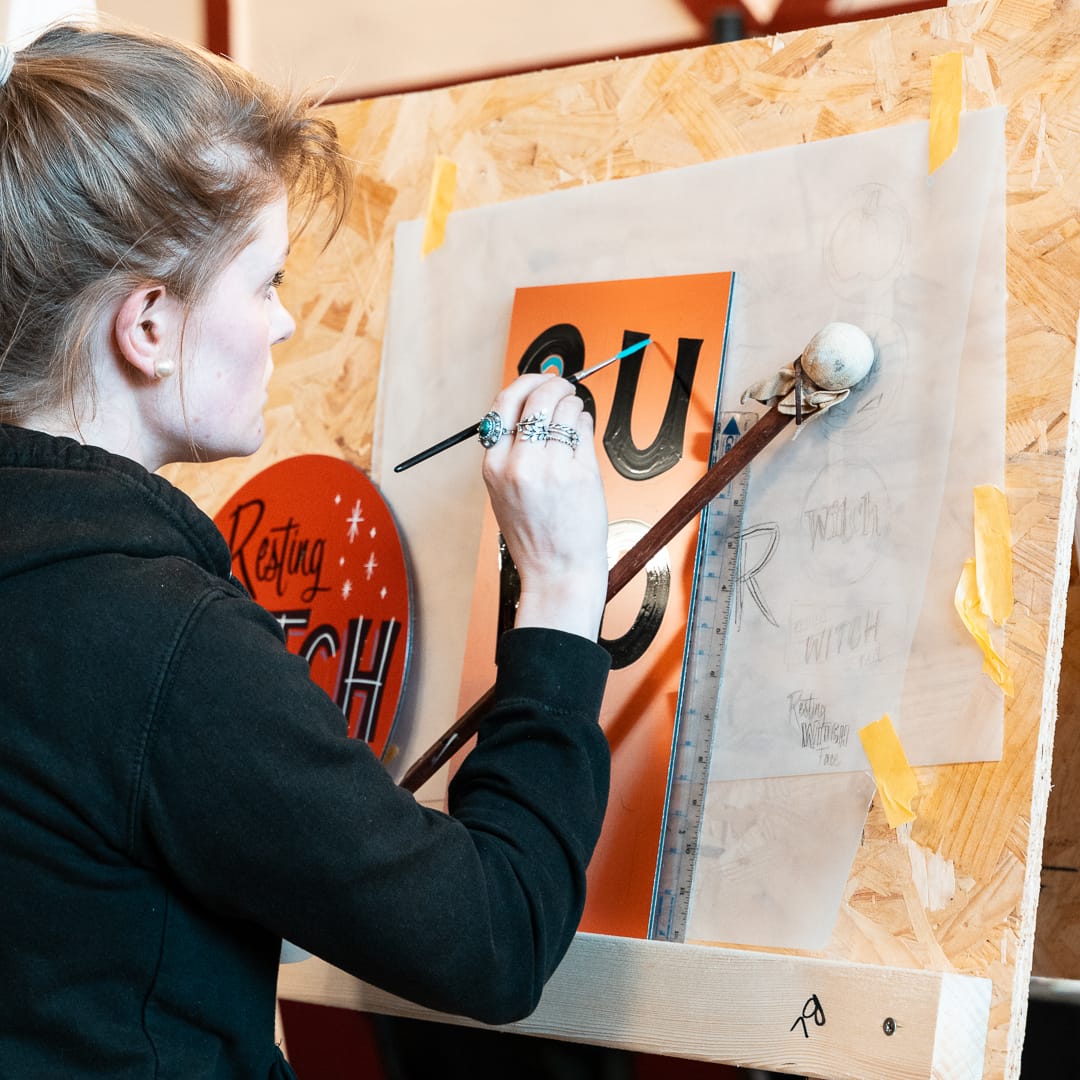 Last month I hosted the third annual Burds of the Brush; a two-day event welcoming female, trans and non-binary signwriters from the world to my little corner of Bristol. With it being mid October, and me being Queen of Halloween, I had to add a little spooky spin, so the local community hall was adorned with bats and ghosts, as well as the usual pile of dibond panels, paints kindly sponsored by A.S. Handover, and easels crafted with the help of my partner Cobra Signs when I realised I had a little too much on my plate!*