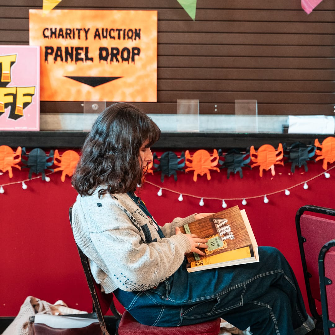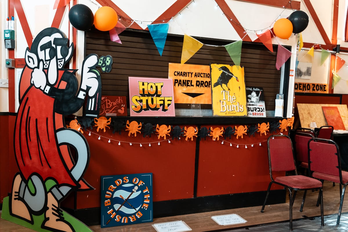 Over the entire weekend, guests collaborated on a mural for the community centre that hosted us, which was laid out by Hana Sunny Whaler. We also held an auction at the end with almost £3,000 raised for Bristol Animal Rescue Centre.