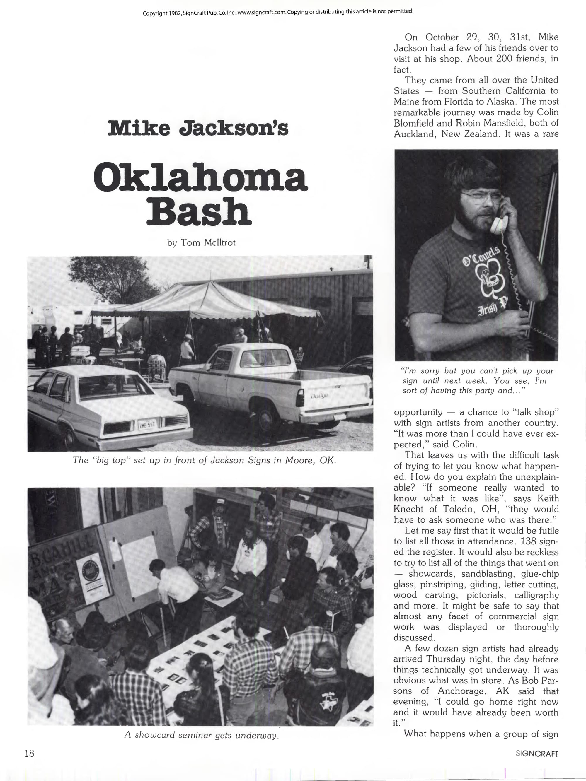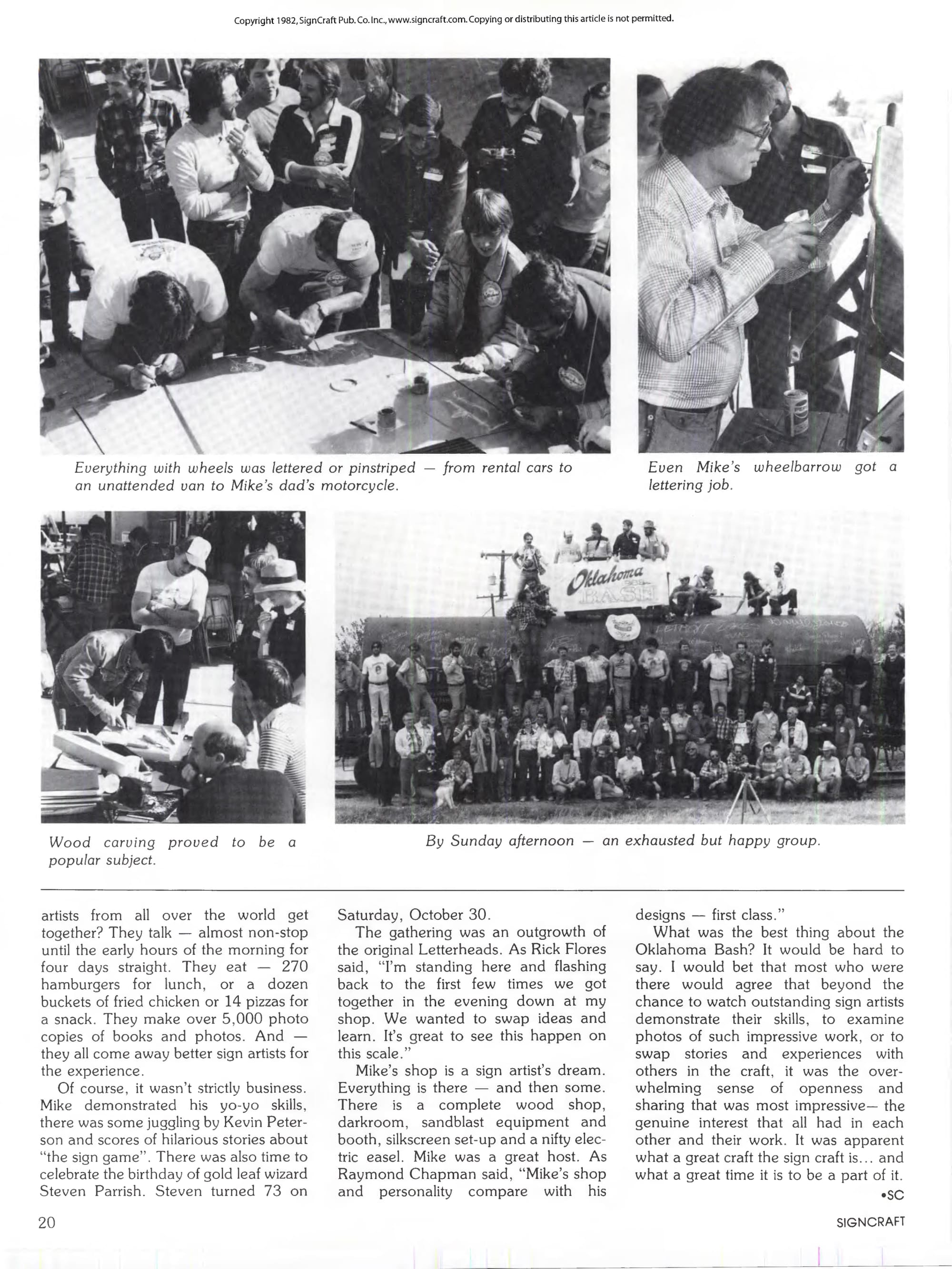 Tom McIltrot's Oklahoma Bash review filled three pages of SignCraft and helped to inspire many of the bigger gatherings that followed..