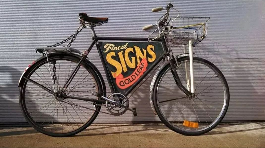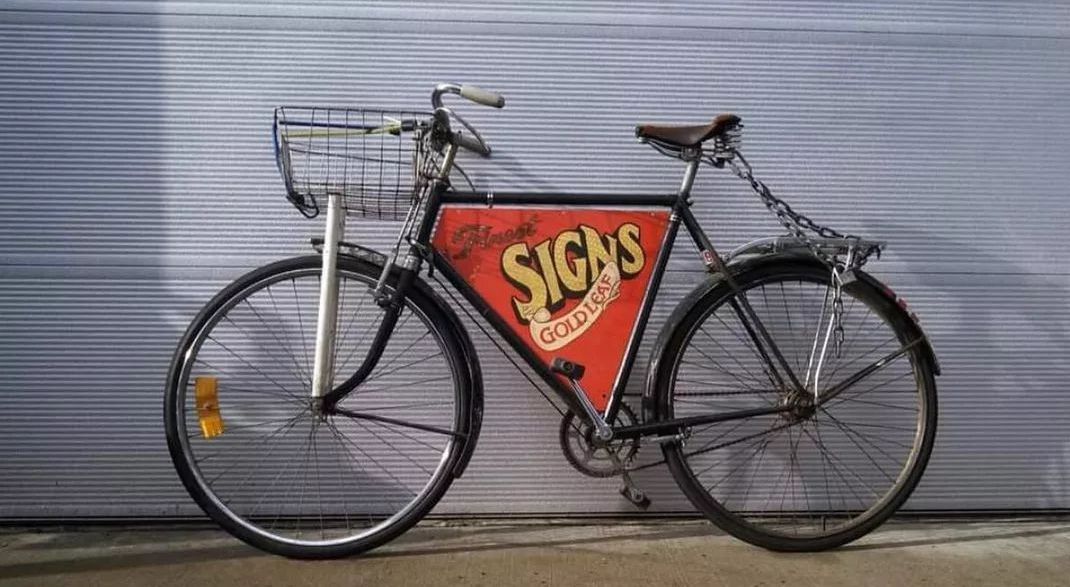 Sign painter bicycles around the world lettered to advertise their sign painting services.
