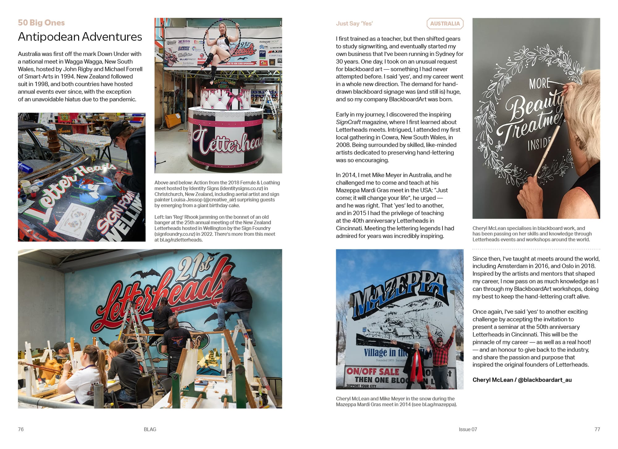 One of the personal reflections from the '50 Big Ones' feature in BLAG 07, the Letterheads special, came from Cheryl McLean who runs Blackboard Art in Sydney, Australia. The thrust of her piece is about the impact that saying 'yes' has had on her Letterheads journey, and she closes with: