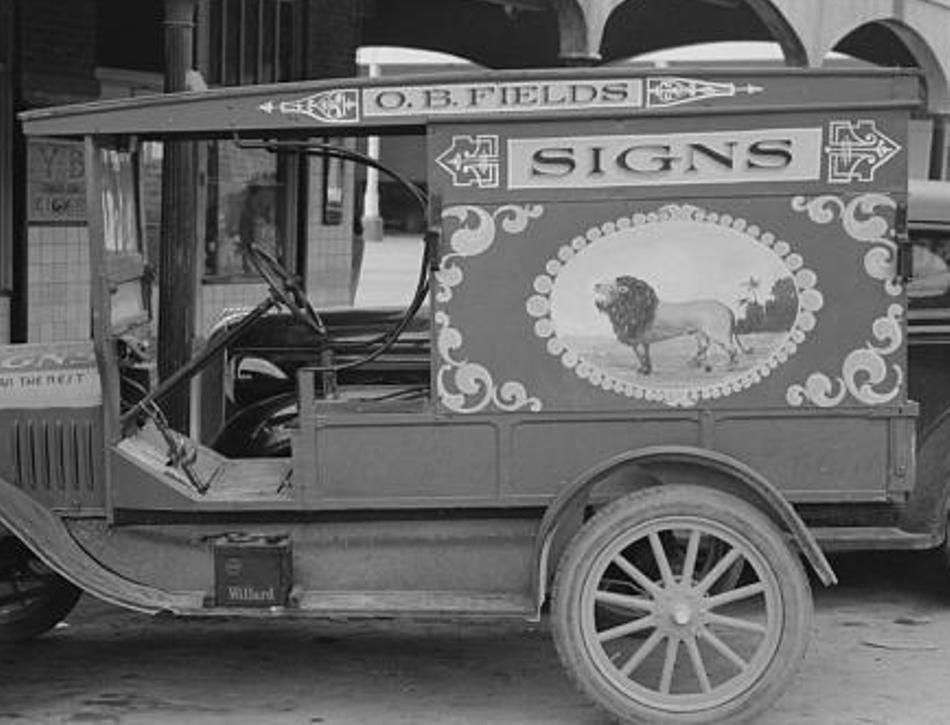 First, let's take a look back. While archival photos of sign painter vehicles appear to be rarer than those of shops and work in progress, some do exist.