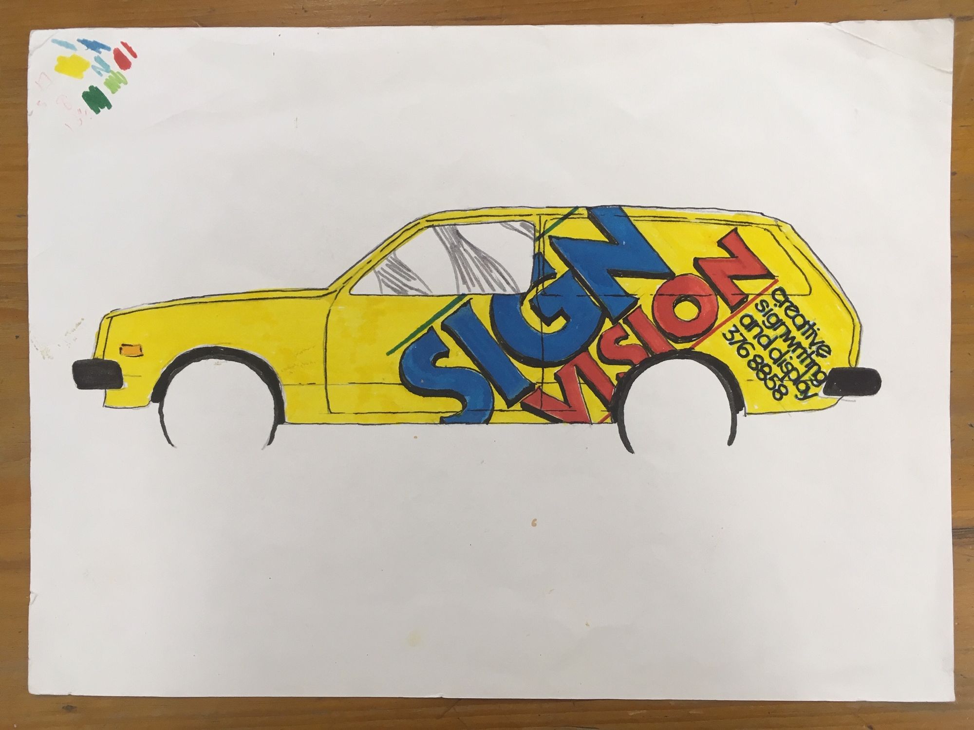 "This is my Holden Gemini panel van that I painted over 40 years ago, and the original felt-tip artwork. I was hooked on the Letraset book, and the lettering here was based on Serif Gothic Heavy and Avant Garde Gothic."