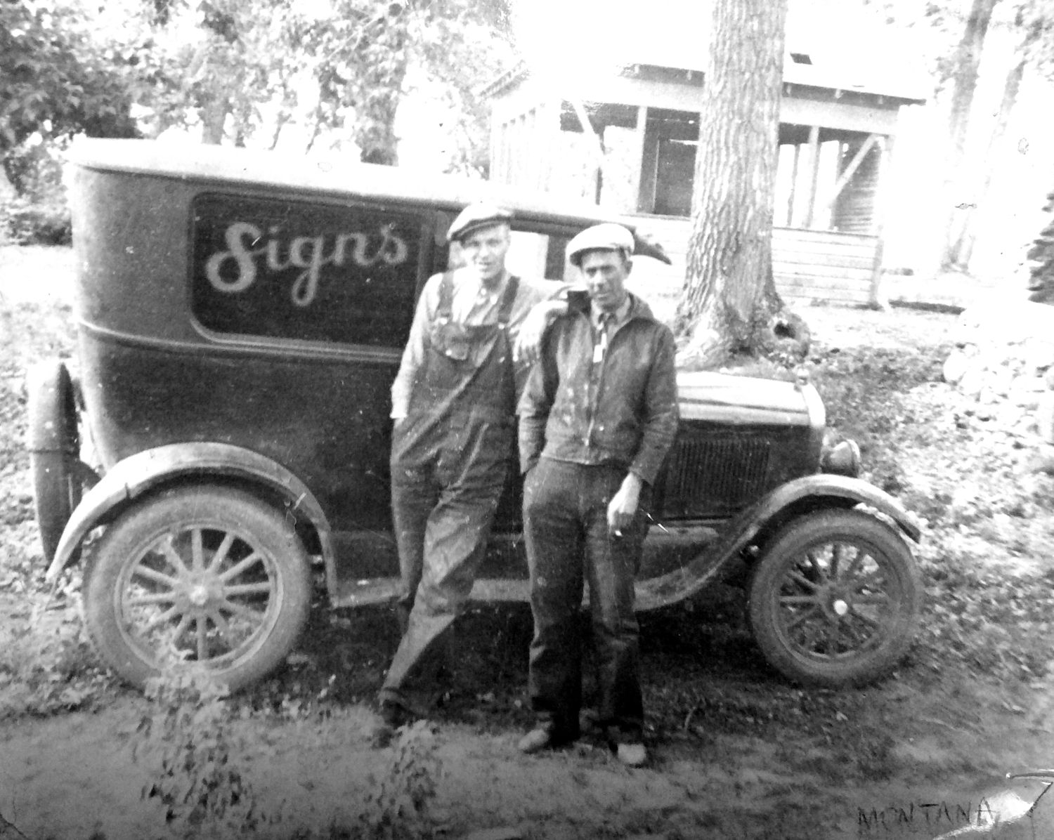 Vehicles for Pearce Signs (still trading), O.B. Fields Signs, and an anonymous duo posting with their ride.