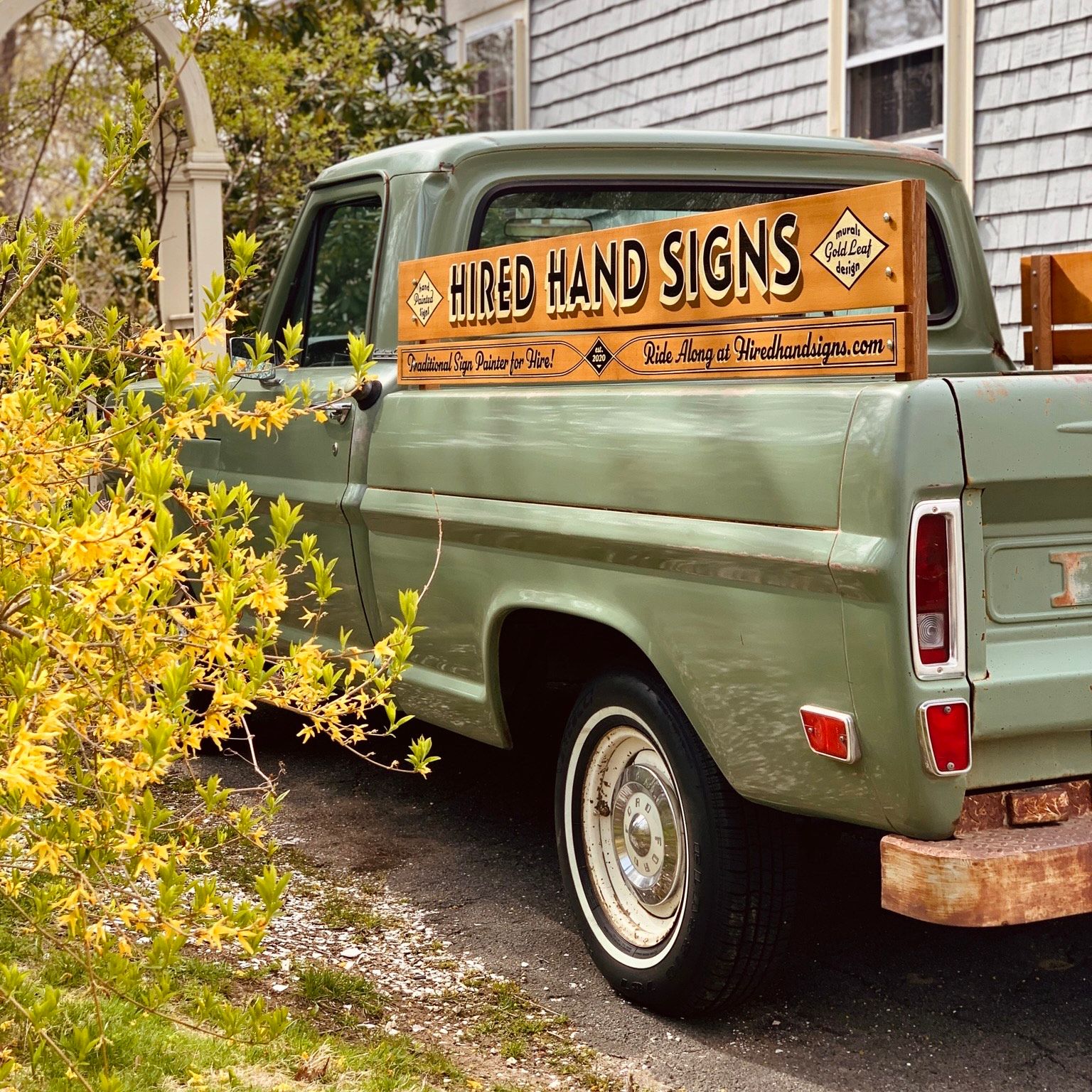 Details from Hired Hand Signs' 1969 shop truck.