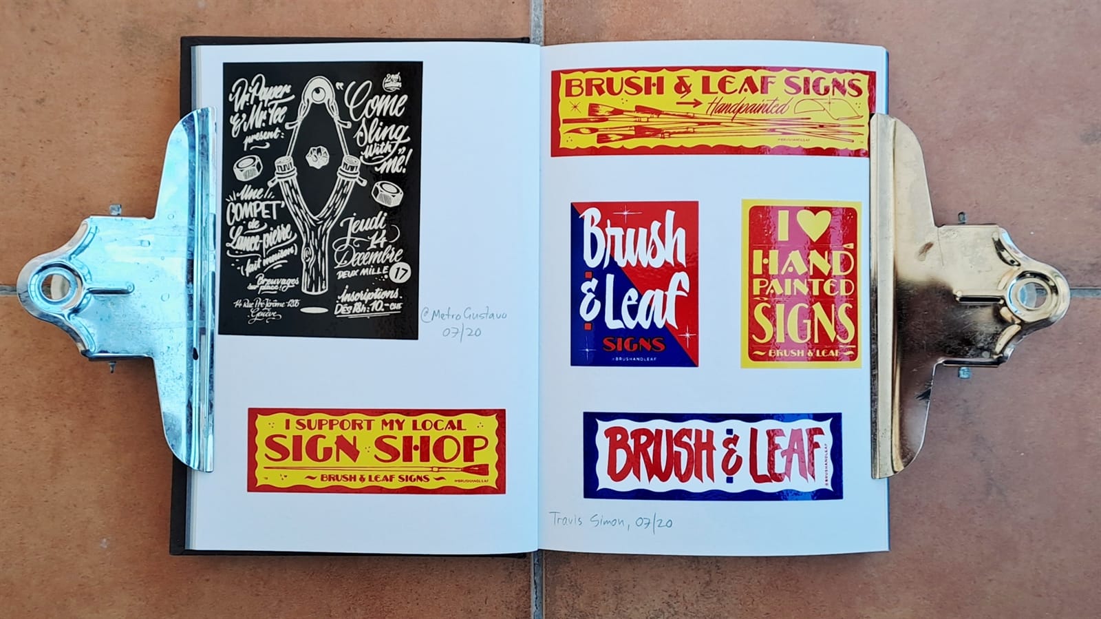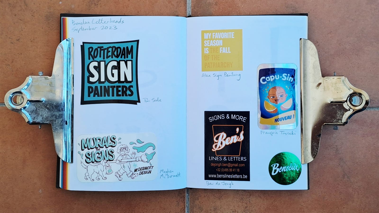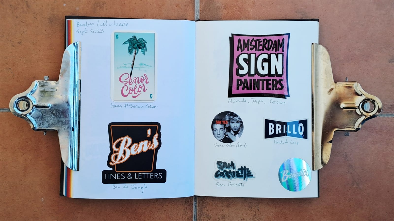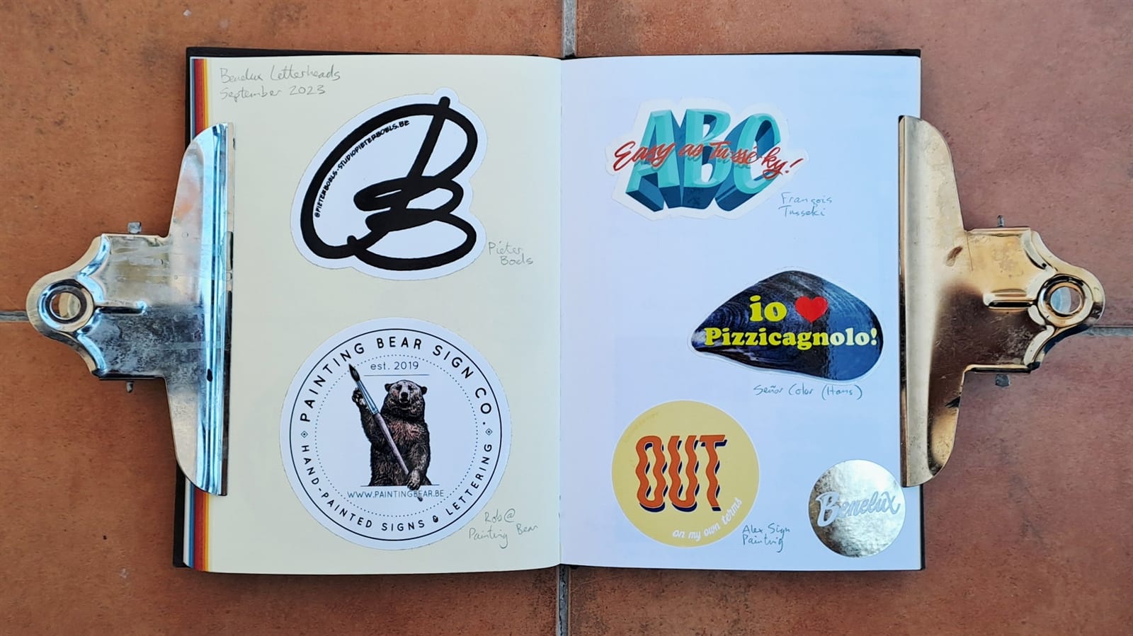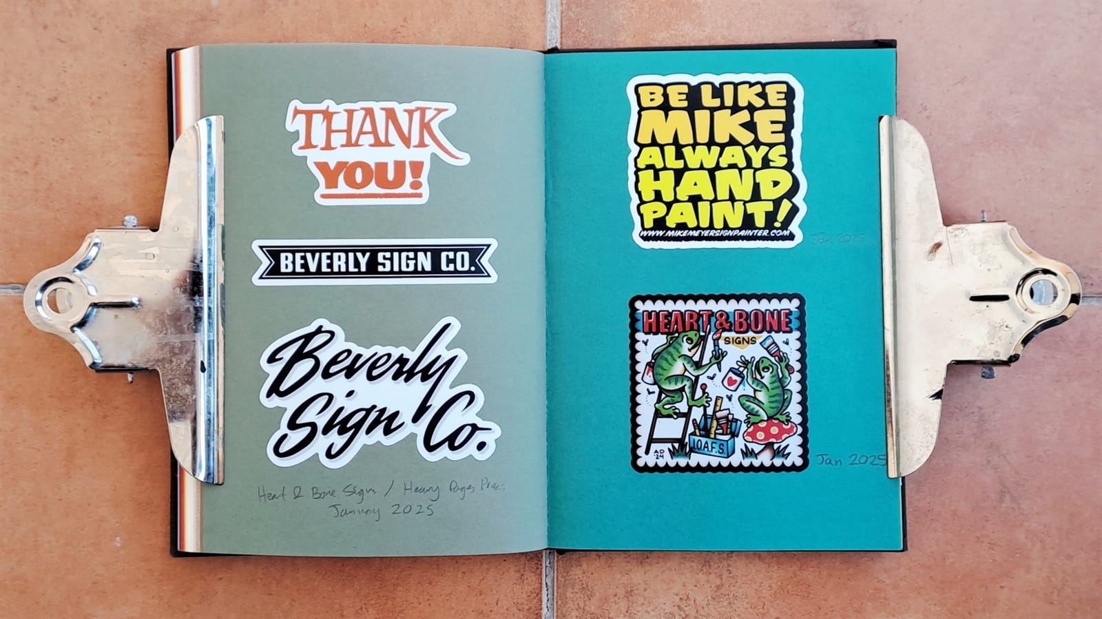Some vintage Better Letters stickers, including Mike Meyer casting us as famed bagel makers, the Einstein Bros.I must have had some spare stickers from Tokyo Letterheads as these appear on both the photo album above and in the opening pages of my sticker album. There’s then the collection of stickers collected at the 2019 Porto Letterheads. Also on this spread are Letterboy (Tokyo Letterheads host), A.S. Handover, and Xesta Studio.‘Fearless’ by Halfstudio (check out their BLAG Meet talk) and three from Joan Quiros (continued below).More from Joan Quiros and ‘Support Your Local Sign Painter’ from Regarfix.More vintage Better Letters, Mike Meyer pieces for the 2019 New Zealand Letterheads, and the first of a few appearances from Tozer Signs. The address label is one that I made after receiving a beautifully written letter from Alice Mazzilli, but please don’t send any stickers there as I’ve moved twice since!