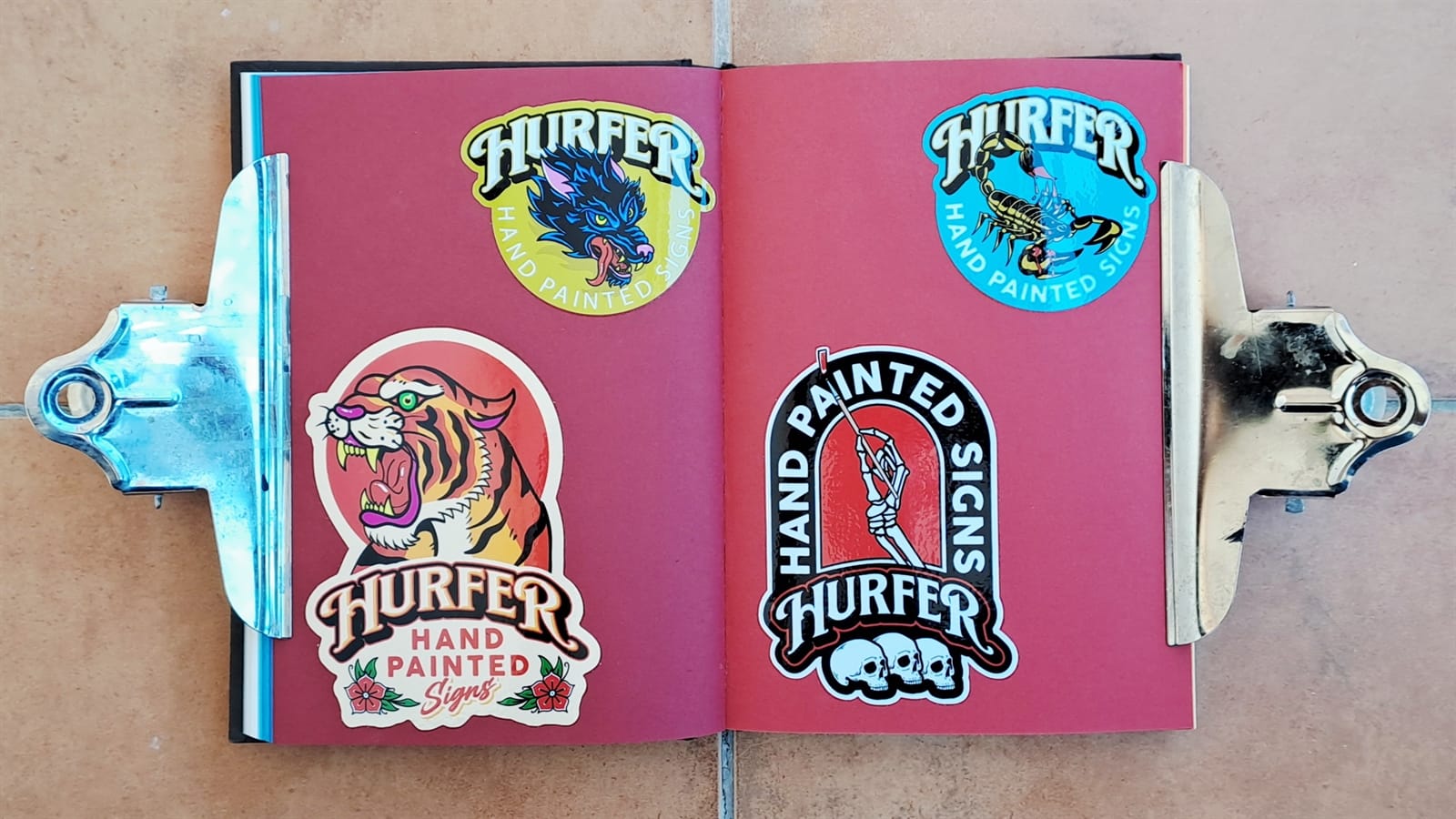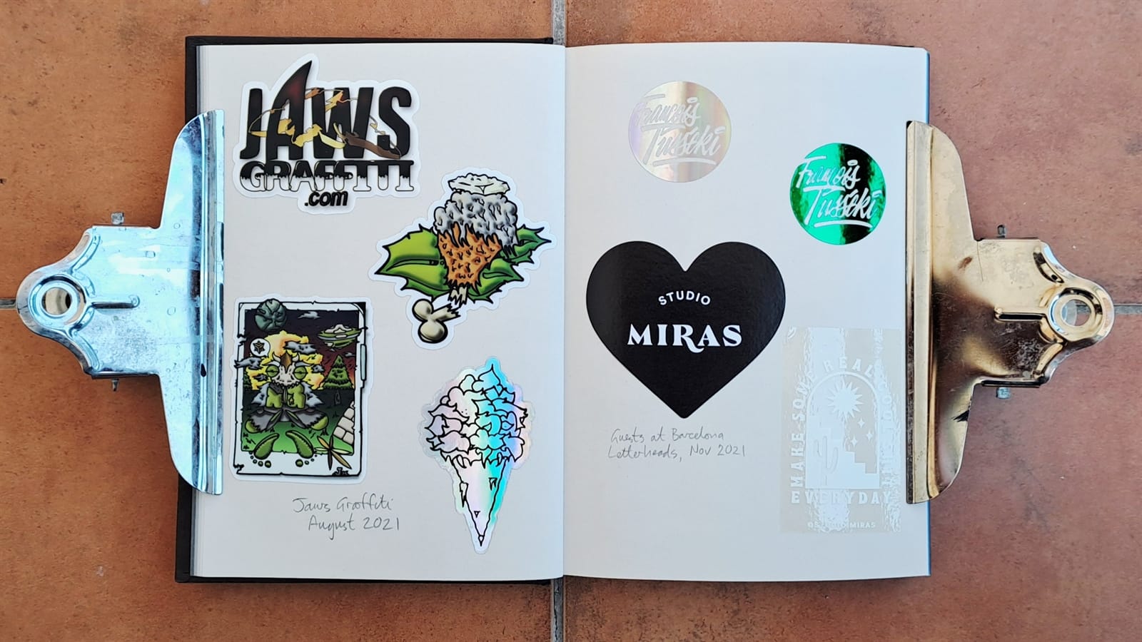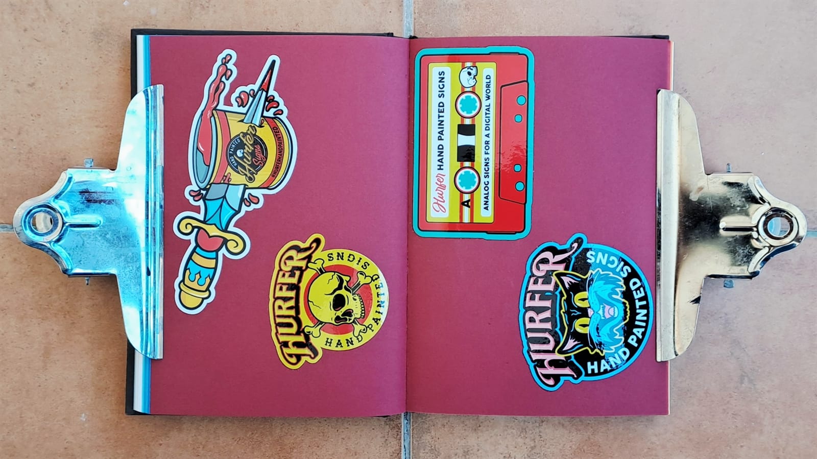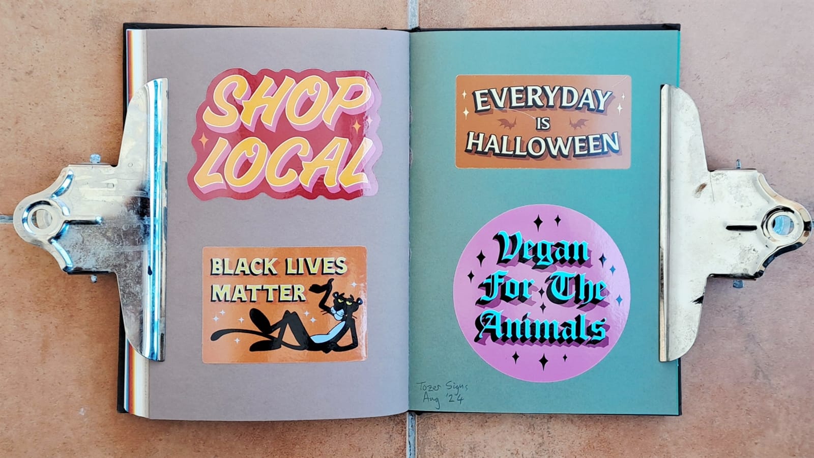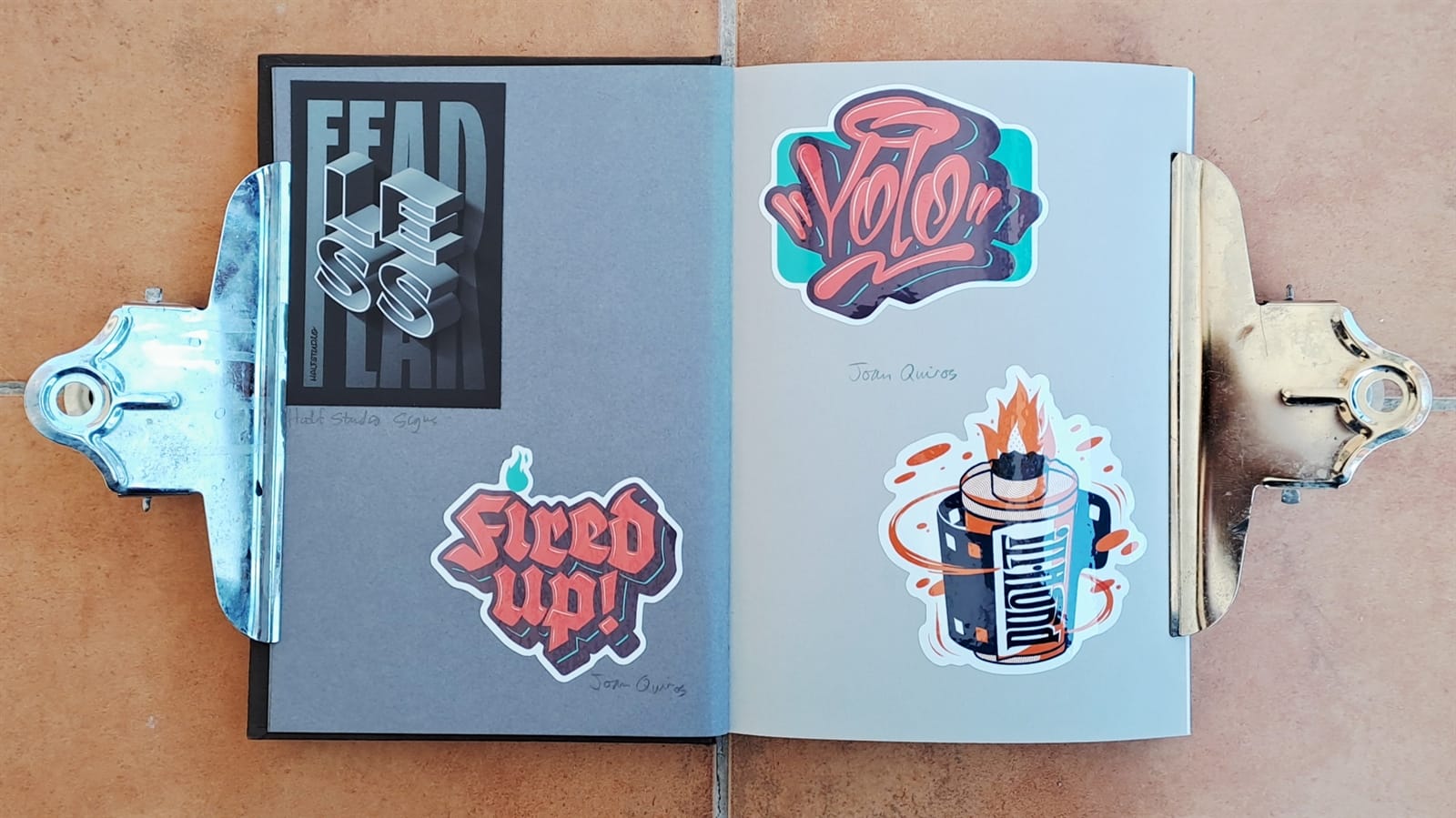 Some vintage Better Letters stickers, including Mike Meyer casting us as famed bagel makers, the Einstein Bros.I must have had some spare stickers from Tokyo Letterheads as these appear on both the photo album above and in the opening pages of my sticker album. There’s then the collection of stickers collected at the 2019 Porto Letterheads. Also on this spread are Letterboy (Tokyo Letterheads host), A.S. Handover, and Xesta Studio.‘Fearless’ by Halfstudio (check out their BLAG Meet talk) and three from Joan Quiros (continued below).More from Joan Quiros and ‘Support Your Local Sign Painter’ from Regarfix.More vintage Better Letters, Mike Meyer pieces for the 2019 New Zealand Letterheads, and the first of a few appearances from Tozer Signs. The address label is one that I made after receiving a beautifully written letter from Alice Mazzilli, but please don’t send any stickers there as I’ve moved twice since!