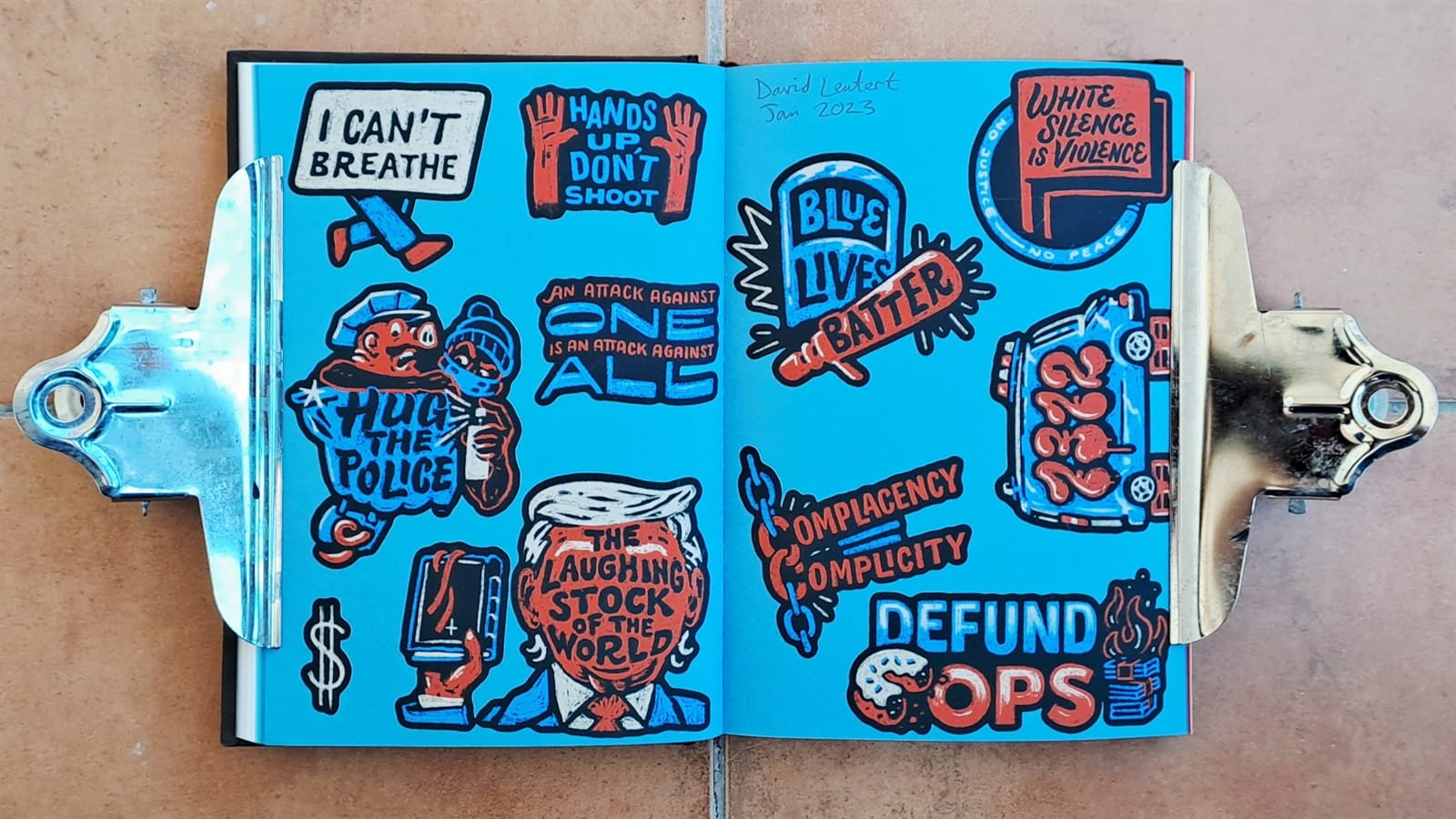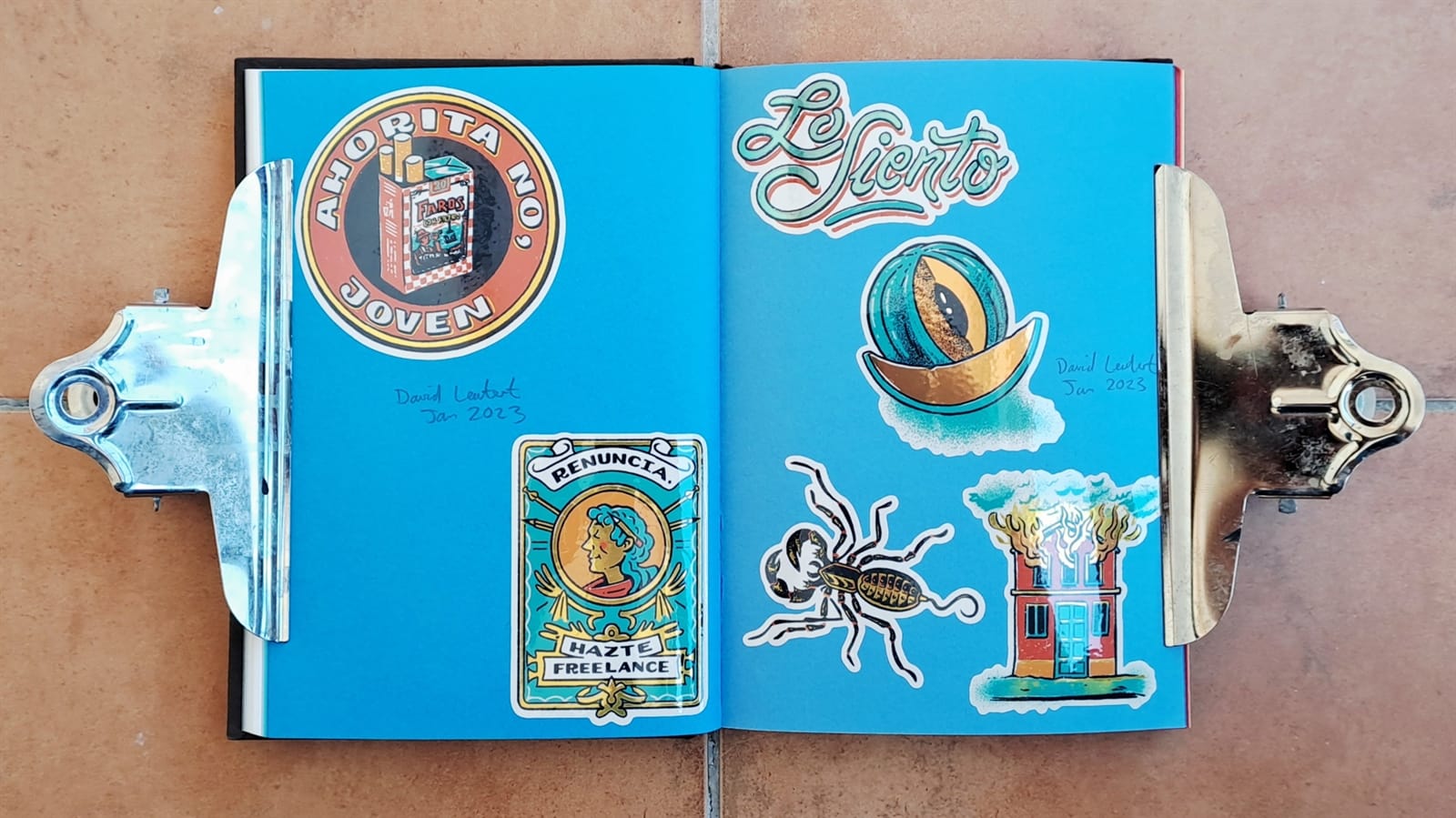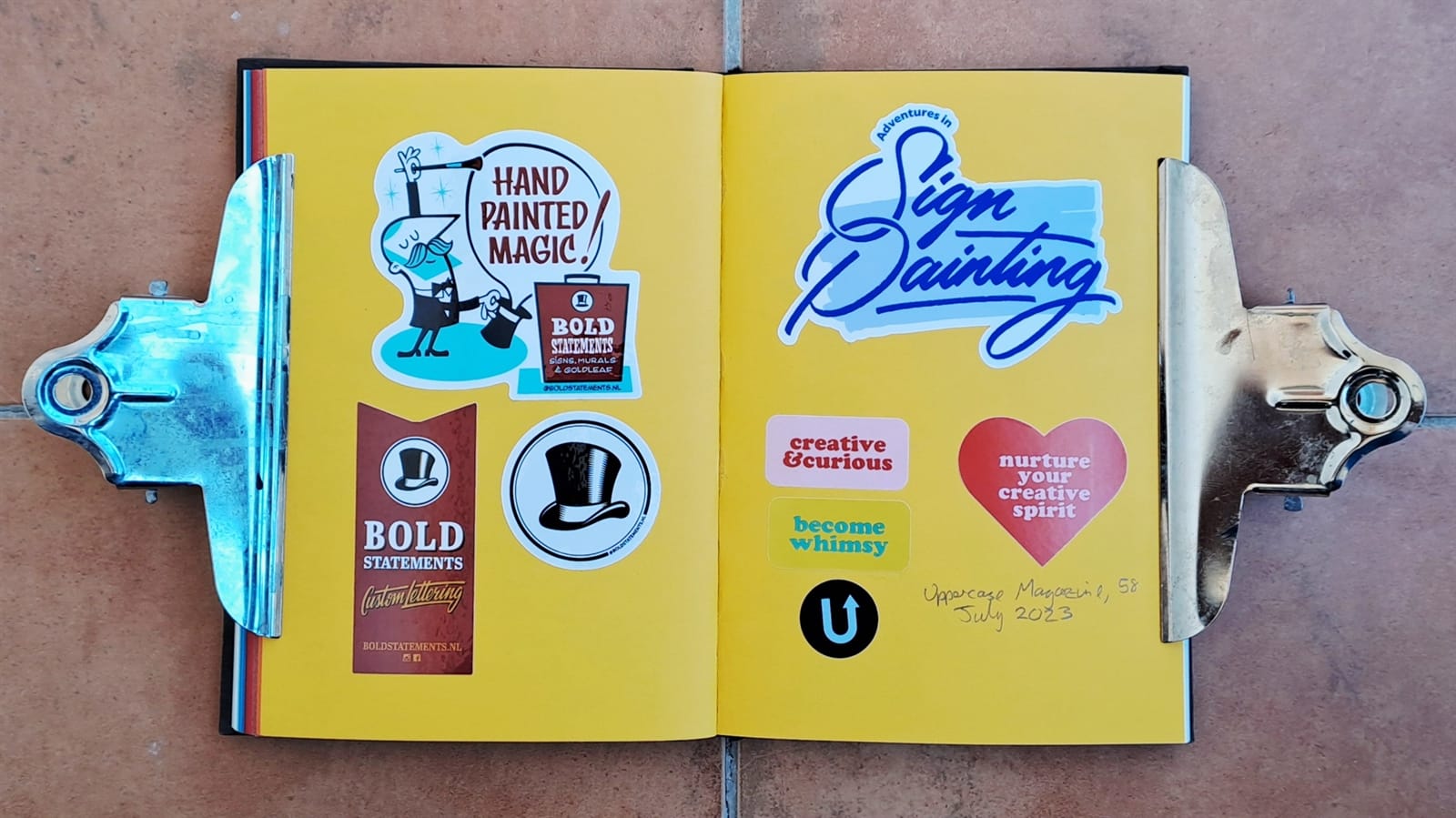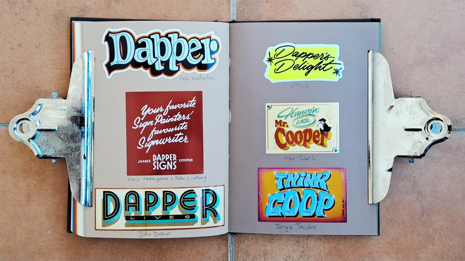This Pink Panther and Captain Caveman double was an impulse purchase from Welsh Bridge Books & Collectibles in Shrewsbury, Shropshire, while visiting in August 2022. And Tozer’s back! Amsterdam Signpainters (also once known as Sign Painters & Co.) alongside the bullish Manning Signs.I honestly can’t remember how/why I got stickers for basketball magazine BSKT and Weird Sports, but the other pieces on this spread came from David Leutert not long after illustrating the ‘Playful Pangrams for Sign Painters’ article.More Manning Signs (left) and David Leutert.