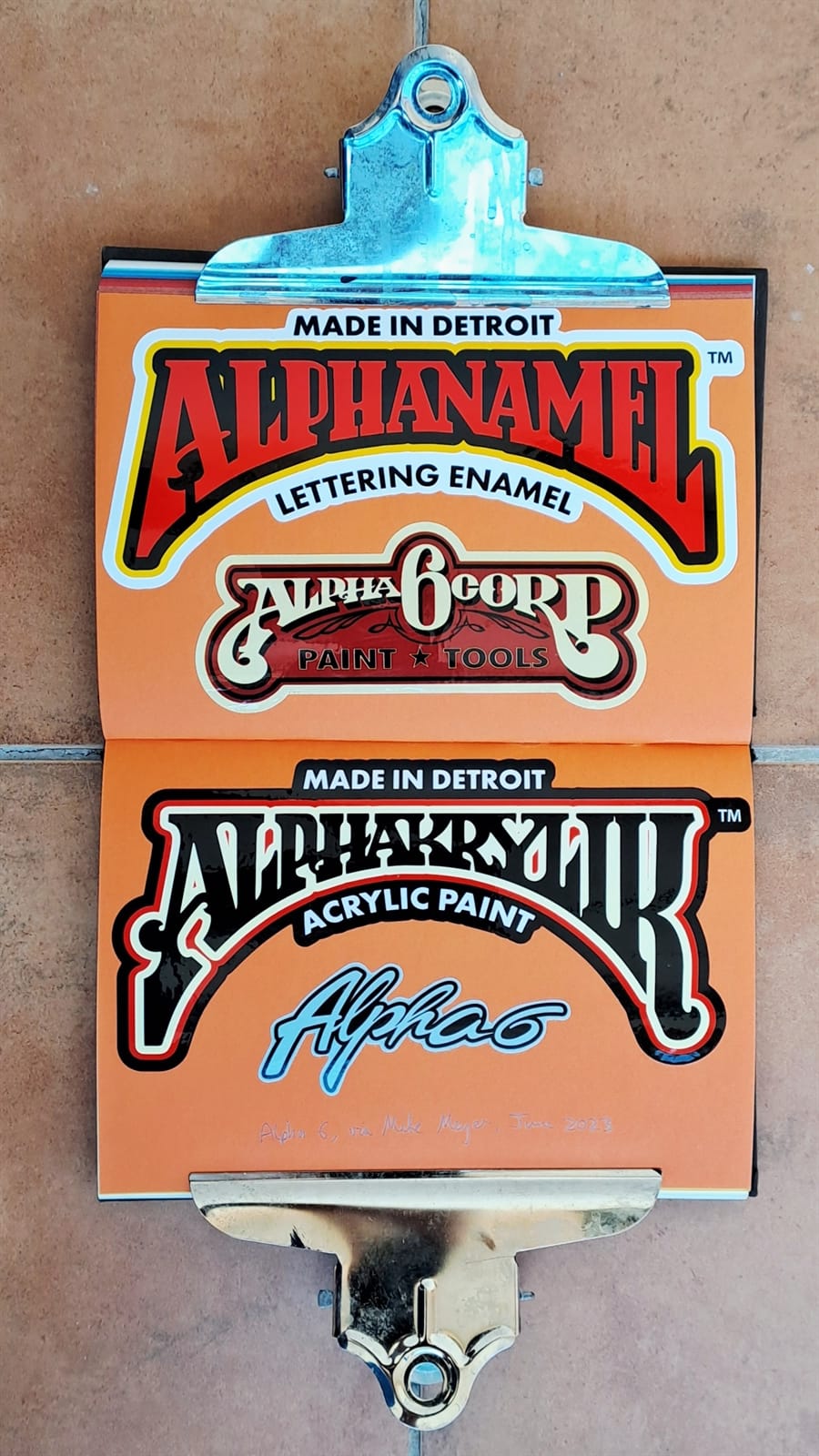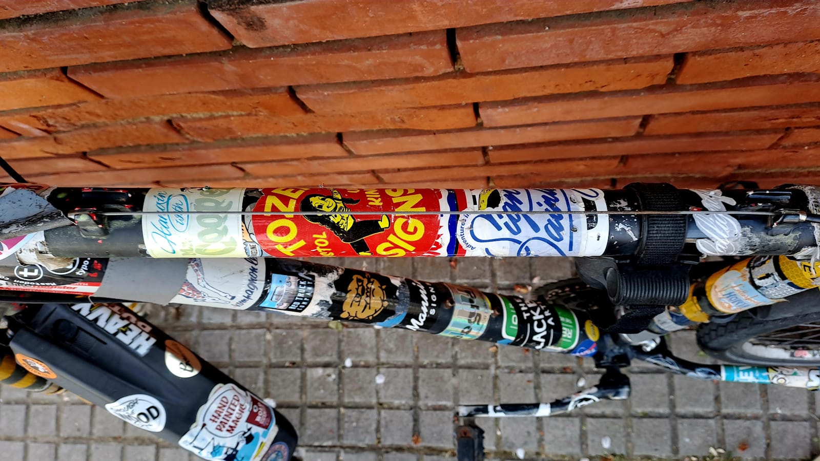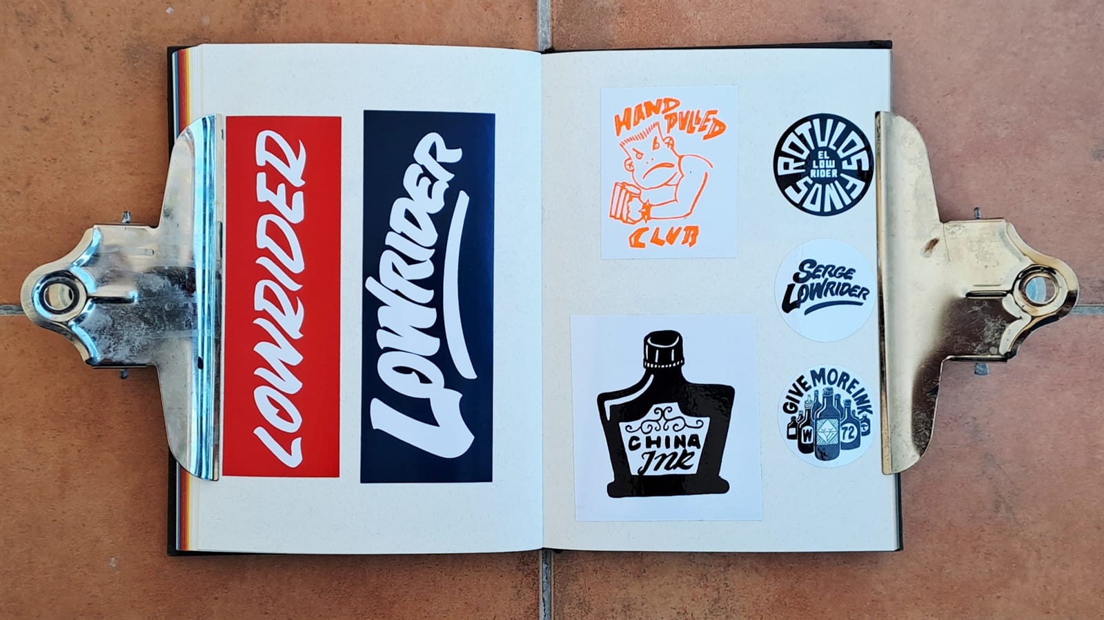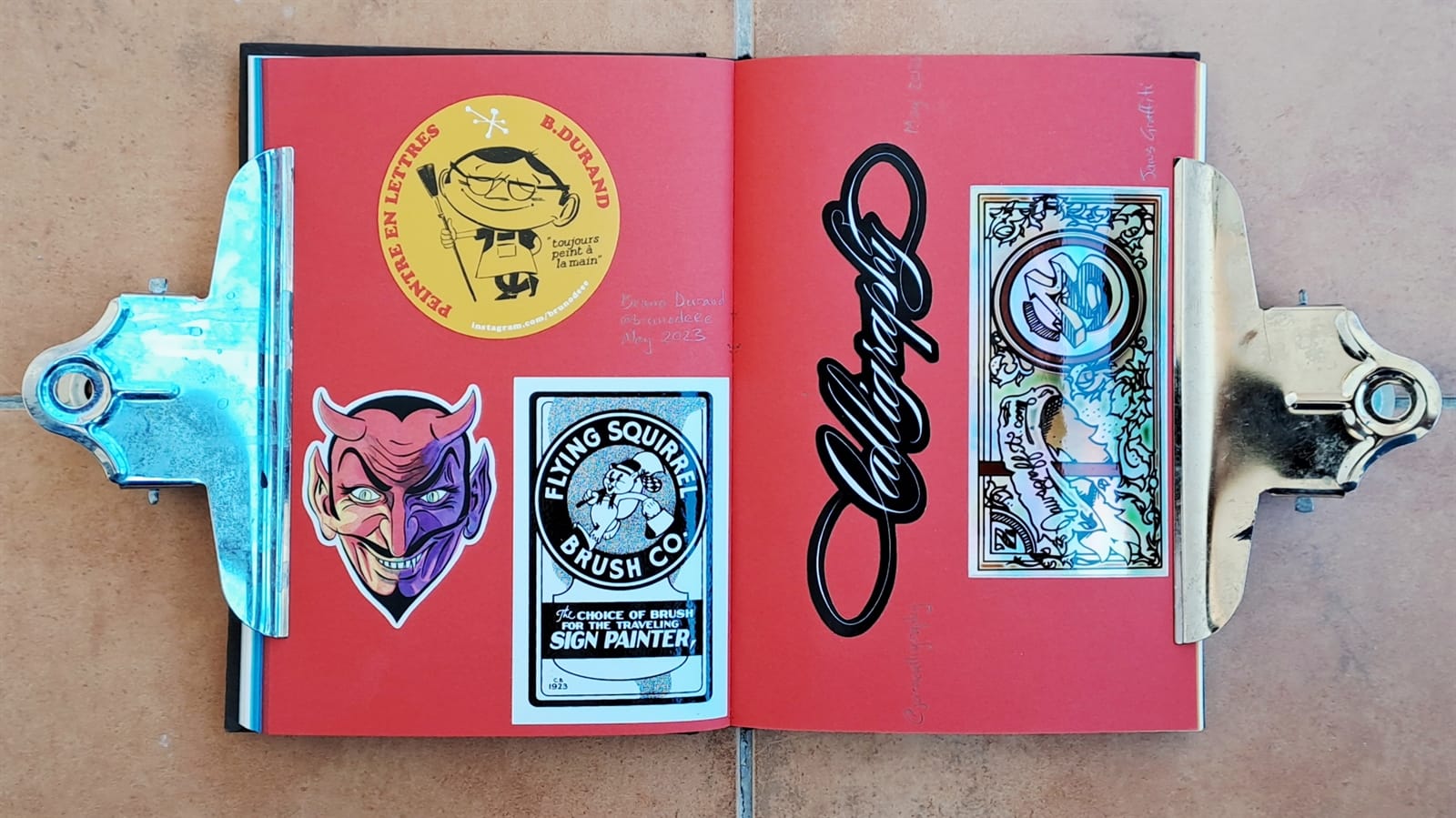 For the last seven years I’ve been filling the pages of the book with what is now a collection of over 400 stickers, mostly for sign painters. (Yes, I’m just a fan boy really!) When I have doubles, the extras go onto my bike, which was another place I used to put stickers before the album.