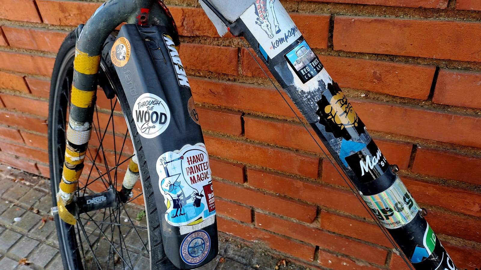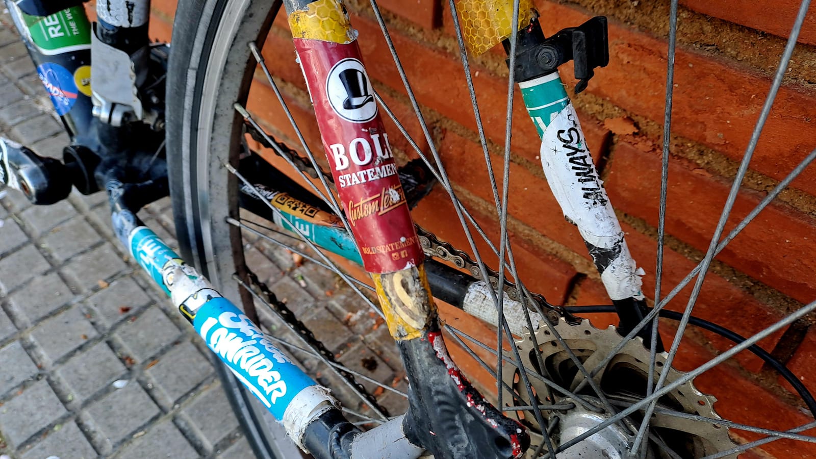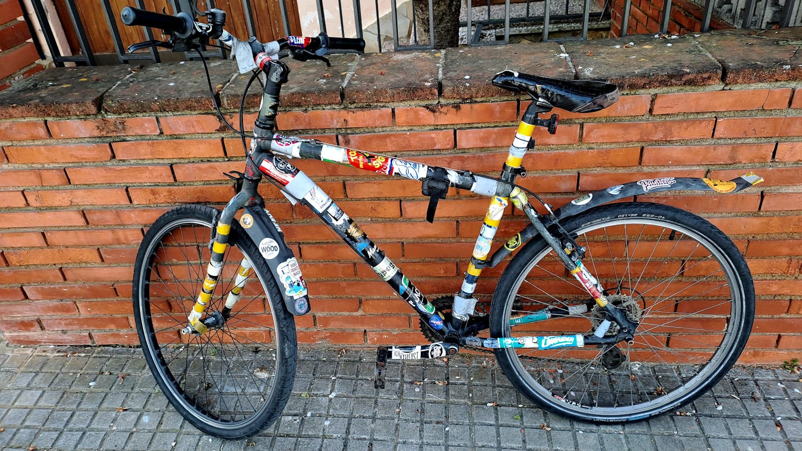 This was originally a bright red 2007 Specialized bike which I ‘roughed up’ to reduce the risk of theft in London. It is now canvas to duplicate stickers.