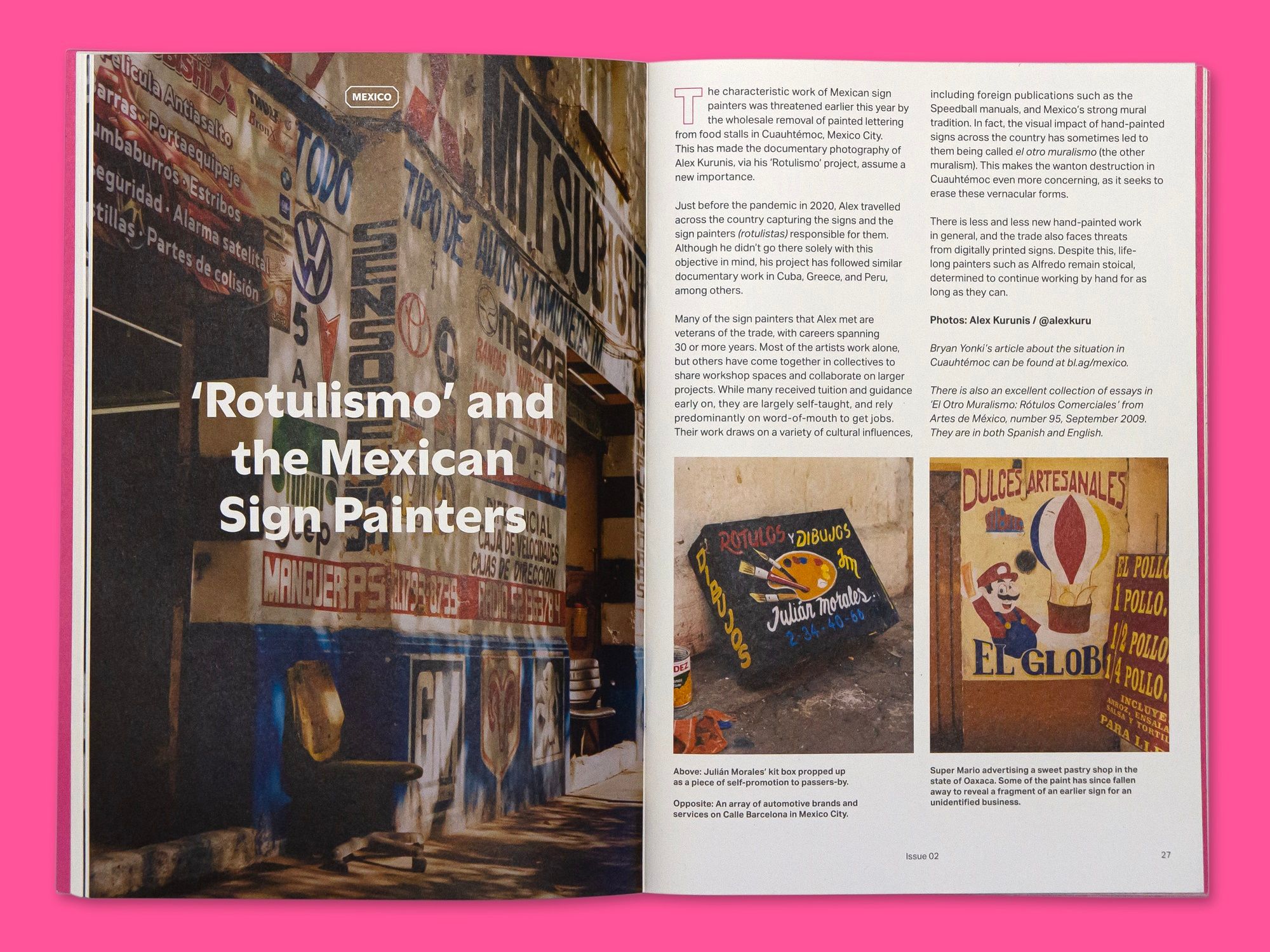 The cover references a feature about the sign painting collective, This Is My Costume, and their 'Renegade Writing' producing faux fascia signs in London. I'd been aware of their work since about 2014, and it was lovely to finally get the story into print after eight years bouncing the idea around.