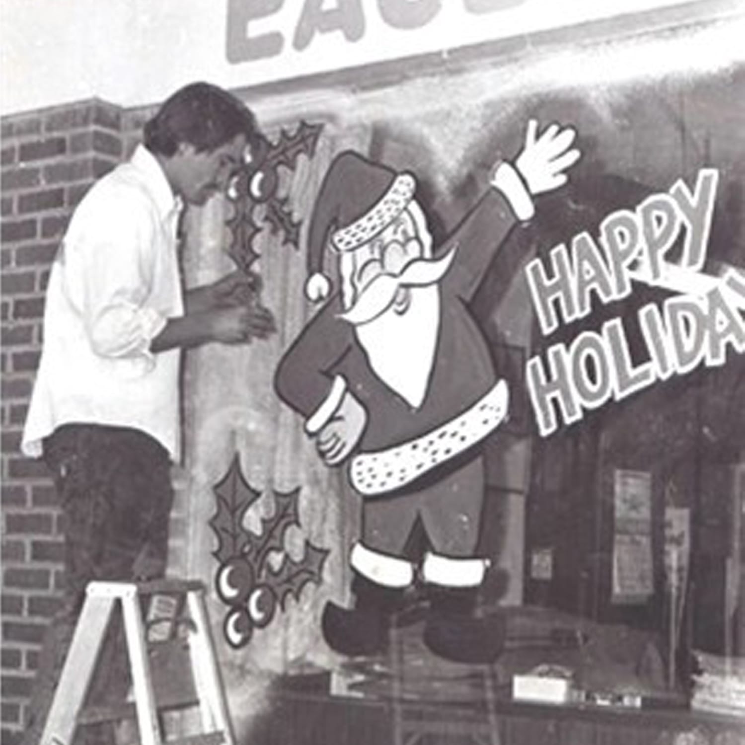 Scot Campbell looks back on this festive window splash, there's a spelling mistake on that piano, and Gladdy is fondly remember by Providence Painted Signs' Shaun Gilheeny.