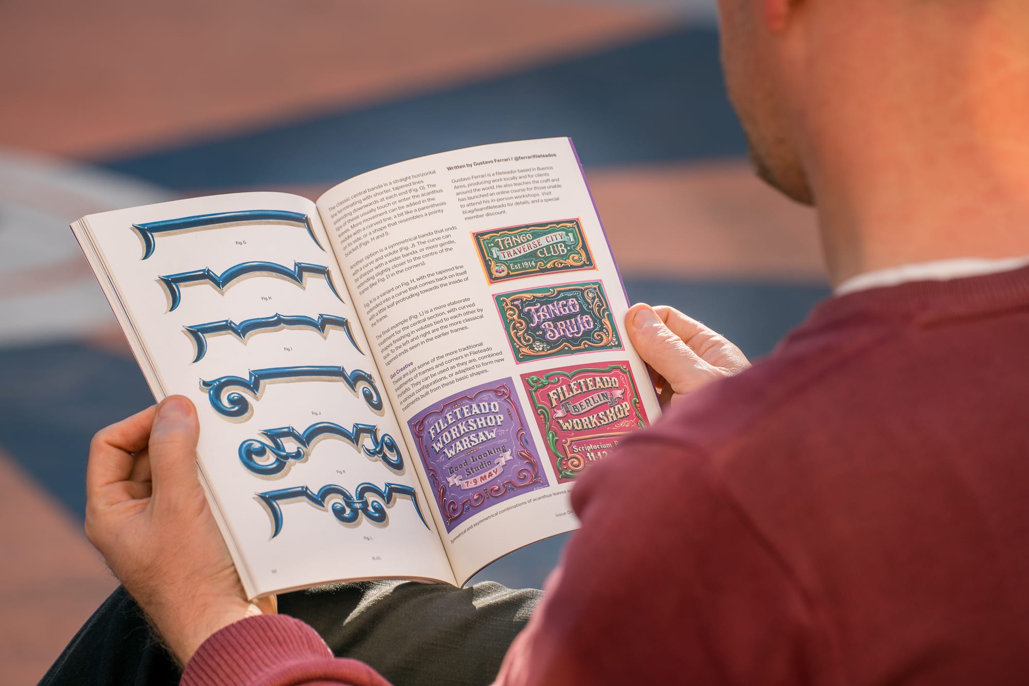 Dapper Signs' budget neon, the frames of Fileteado Porteño from Gustavo Ferrari, and Rob Cooper's 2 Pencil alphabet.