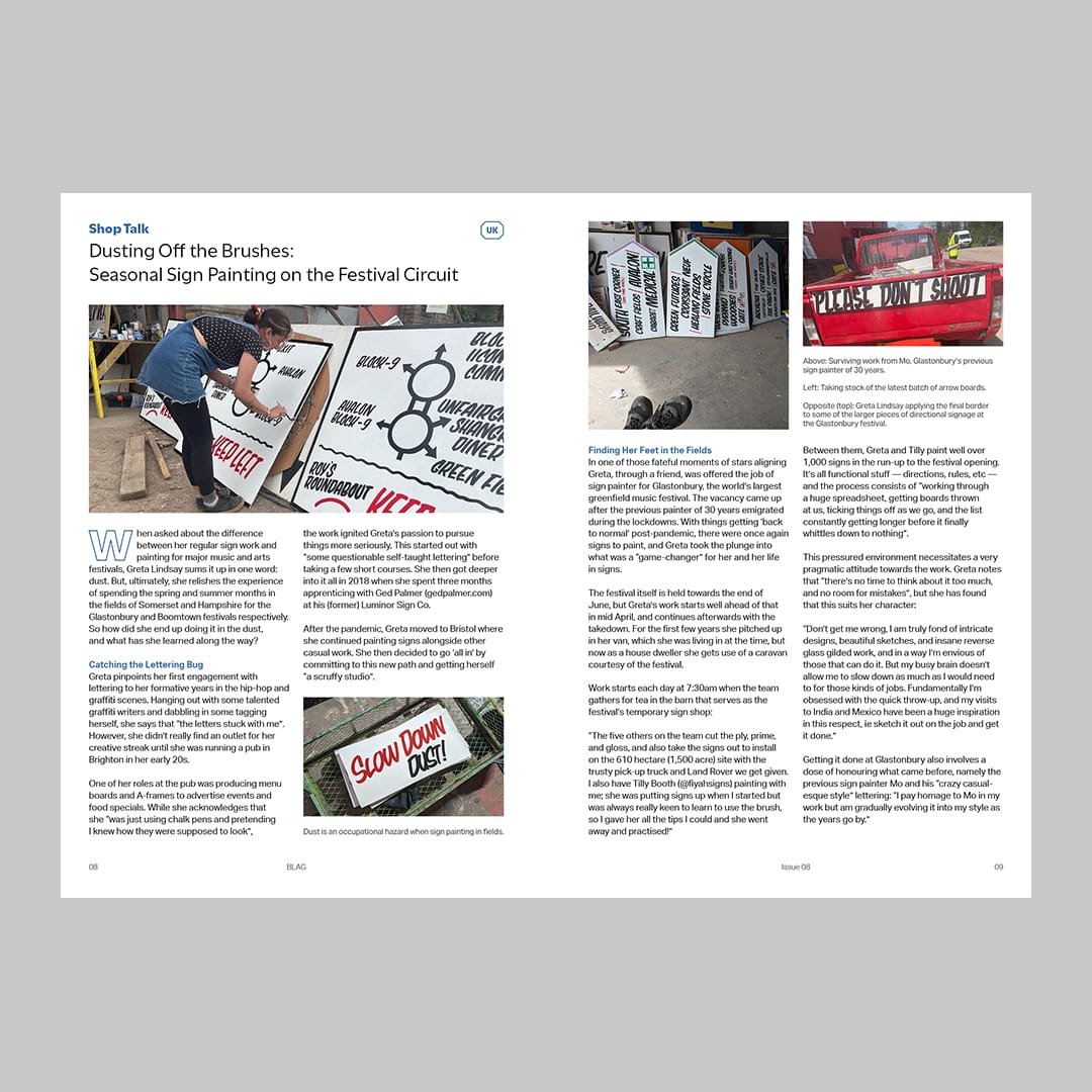Between the covers of the worldwide adventures in sign painting from Issue 08 of BLAG.