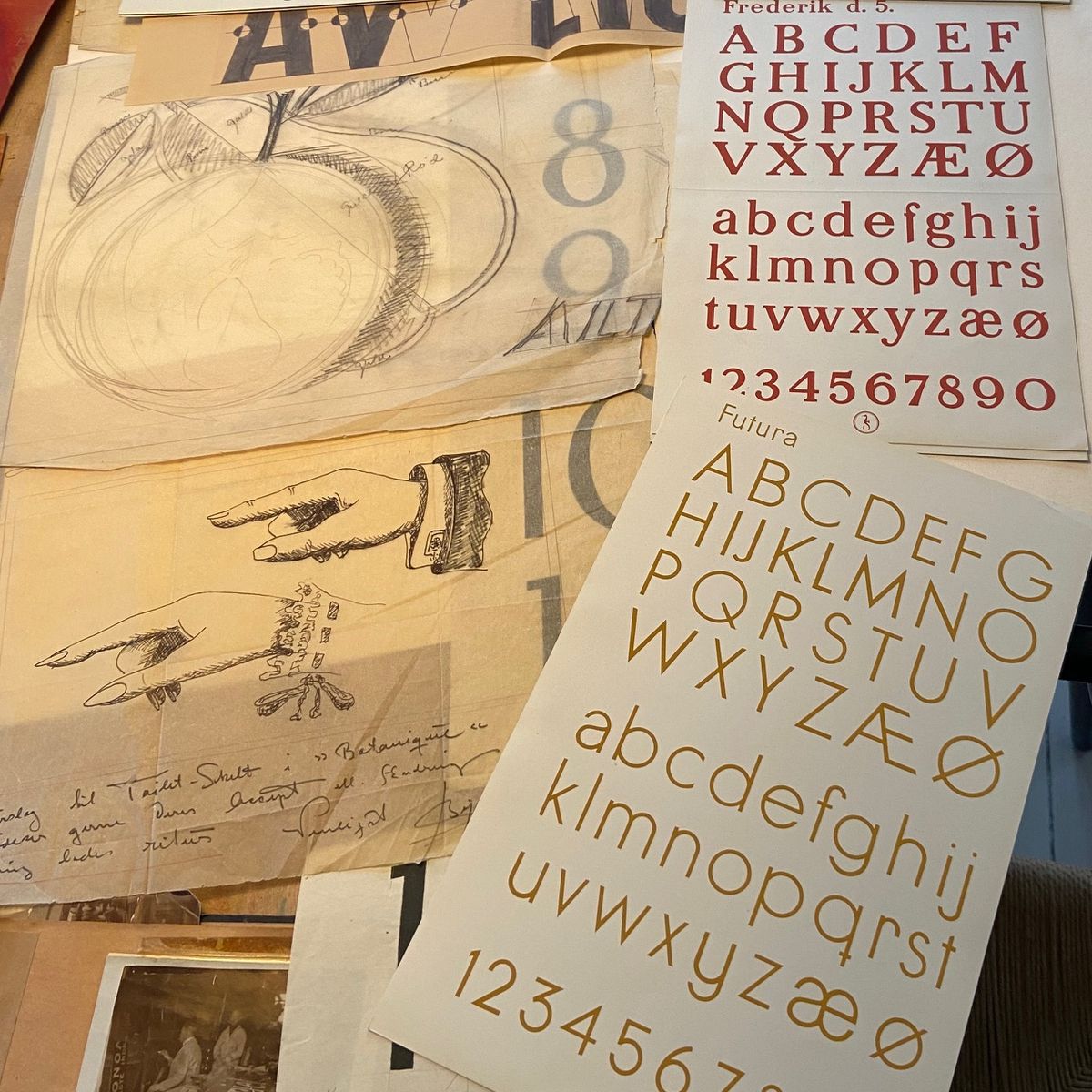 A significant part of the collection consists of pictures and a portfolio from the distinguished Danish painter Adolf Andersen. In addition to his pounce patterns and sketches, there are numerous alphabets, notebooks, and price lists. Many of these items have little or no contextual information, but the photos span the bulk of Anderson's working life from the early 20th century to the 1940s.