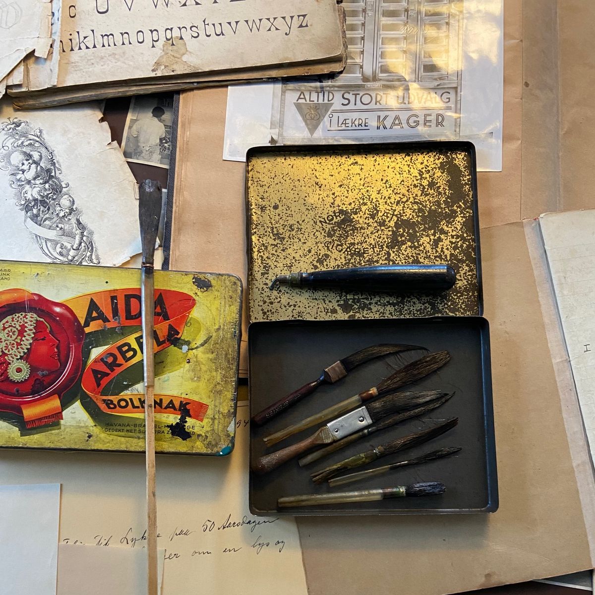 My late colleague on the painting course at Copenhagen's technical school, Keld Kurdahl, had a keen interest in the history of the painting profession in Denmark. He spent his working life collecting numerous artefacts which passed into my possession when he died in 2019. Everything was kept in the school, but I was the only one aware of the treasures contained in these unremarkable boxes—I recently rescued them from near-certain disposal.